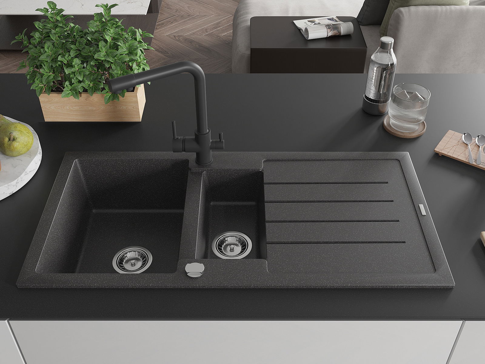 Zlewozmywak został wykonany z wysokiej jakości granitu. Stanowi eleganckie, a przede wszystkim praktyczne uzupełnienie każdej kuchni, niezależnie od jej stylu. Wysoka jakość oraz trwałość granitu zapewniają wieloletnie użytkowanie.