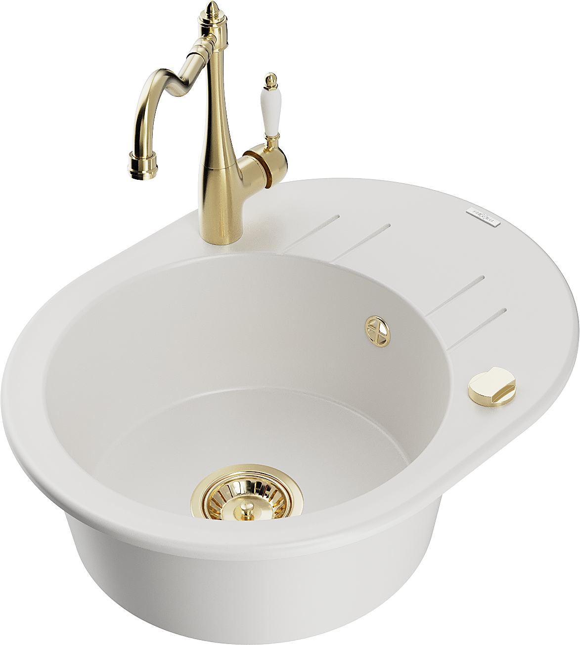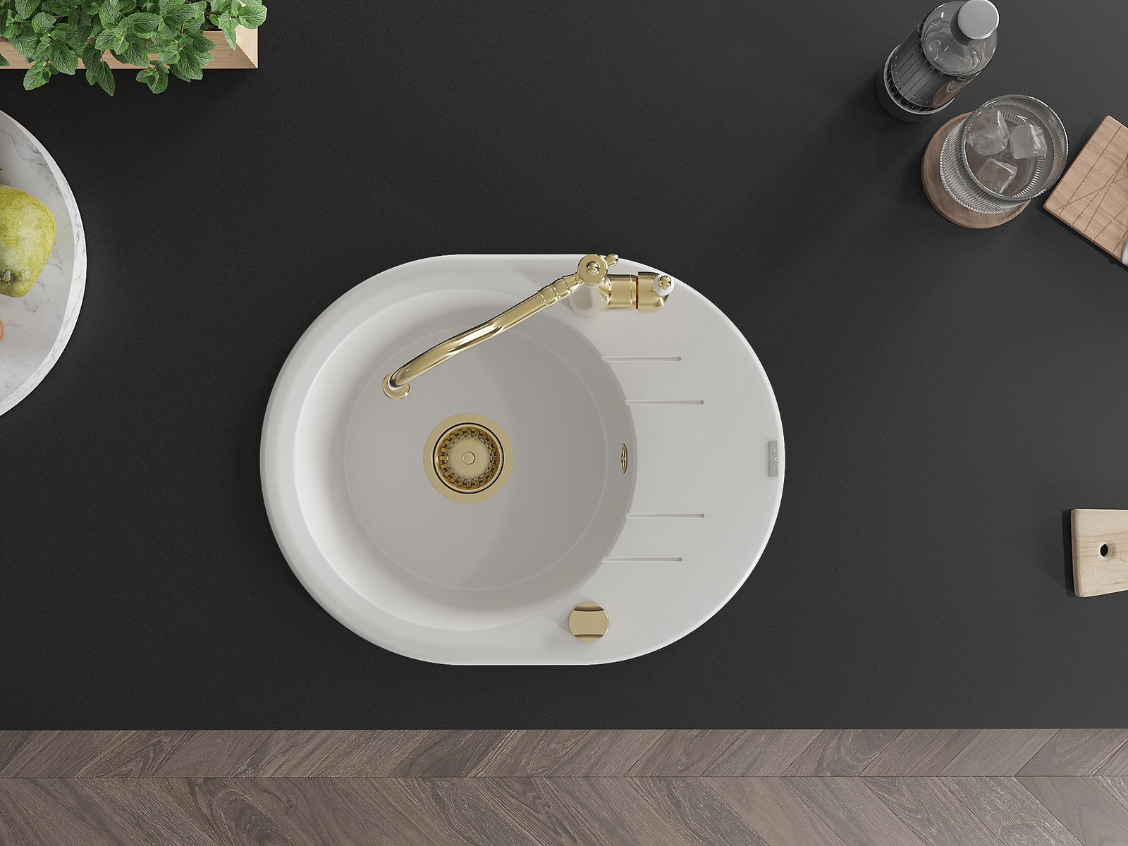 Mexen Kevin zlewozmywak granitowy 1-komorowy z ociekaczem i baterią kuchenną Carla, biały - 6517-20-670700-50