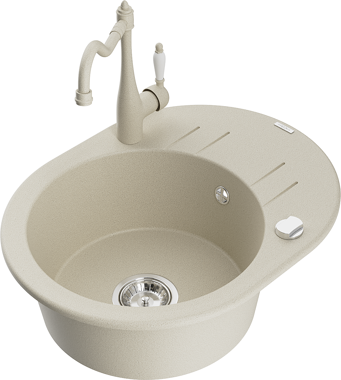 Mexen Kevin zlewozmywak granitowy 1-komorowy z ociekaczem i baterią kuchenną Carla, beżowy - 6517-69-670700-69