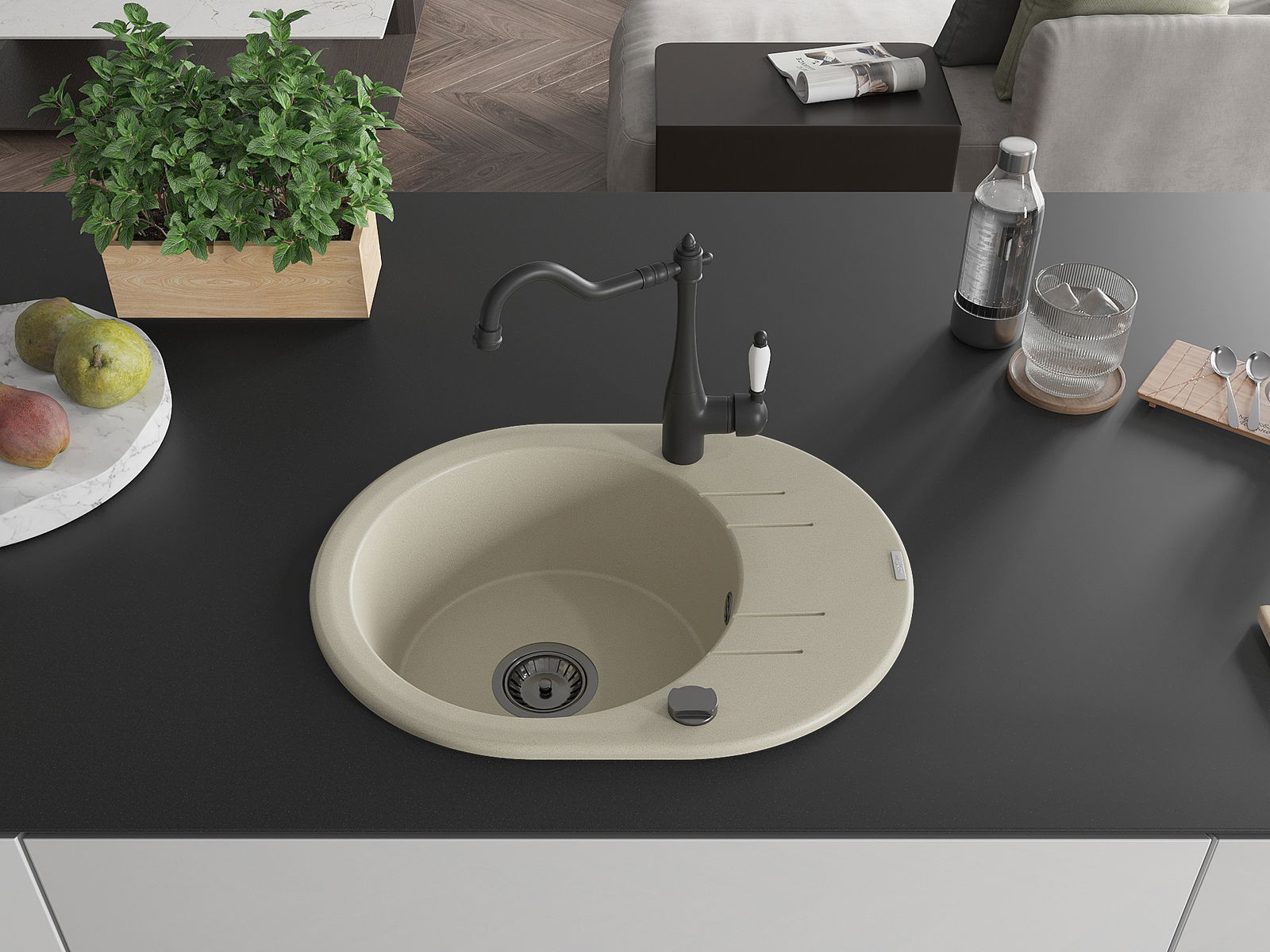 Zlewozmywak został wykonany z wysokiej jakości granitu. Stanowi eleganckie, a przede wszystkim praktyczne uzupełnienie każdej kuchni, niezależnie od jej stylu. Wysoka jakość oraz trwałość granitu zapewniają wieloletnie użytkowanie.