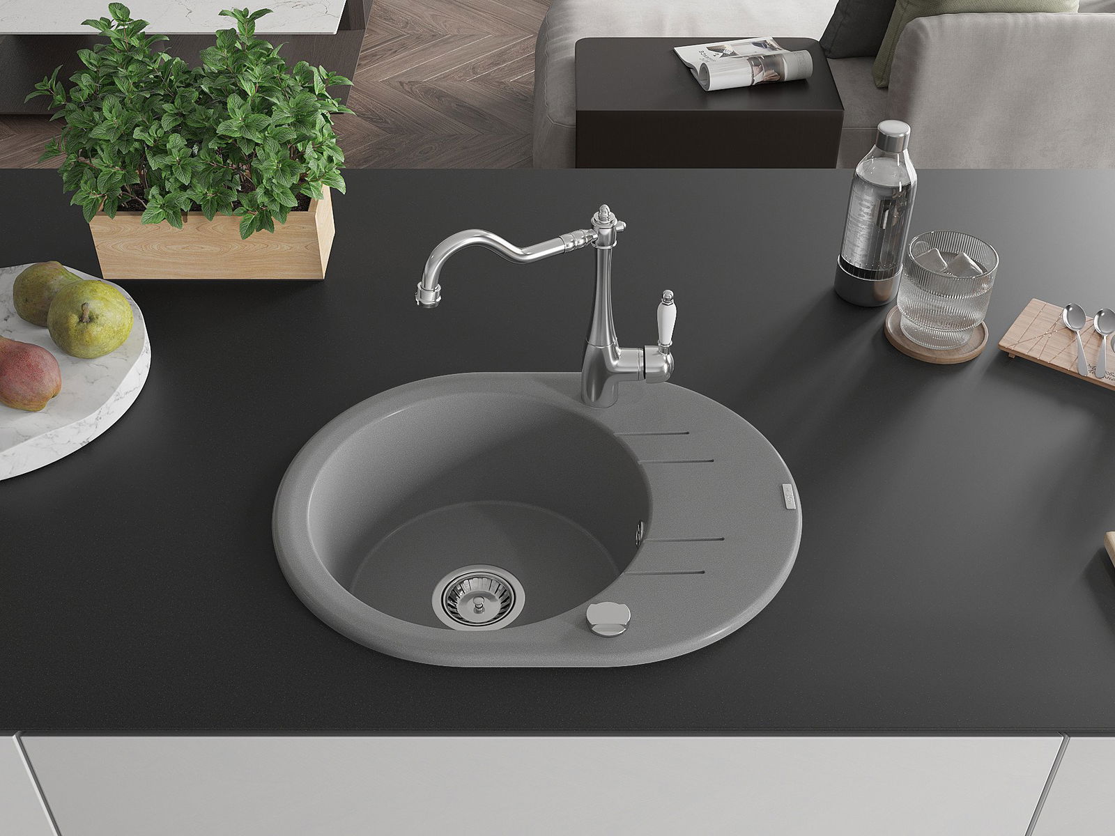Zlewozmywak został wykonany z wysokiej jakości granitu. Stanowi eleganckie, a przede wszystkim praktyczne uzupełnienie każdej kuchni, niezależnie od jej stylu. Wysoka jakość oraz trwałość granitu zapewniają wieloletnie użytkowanie.