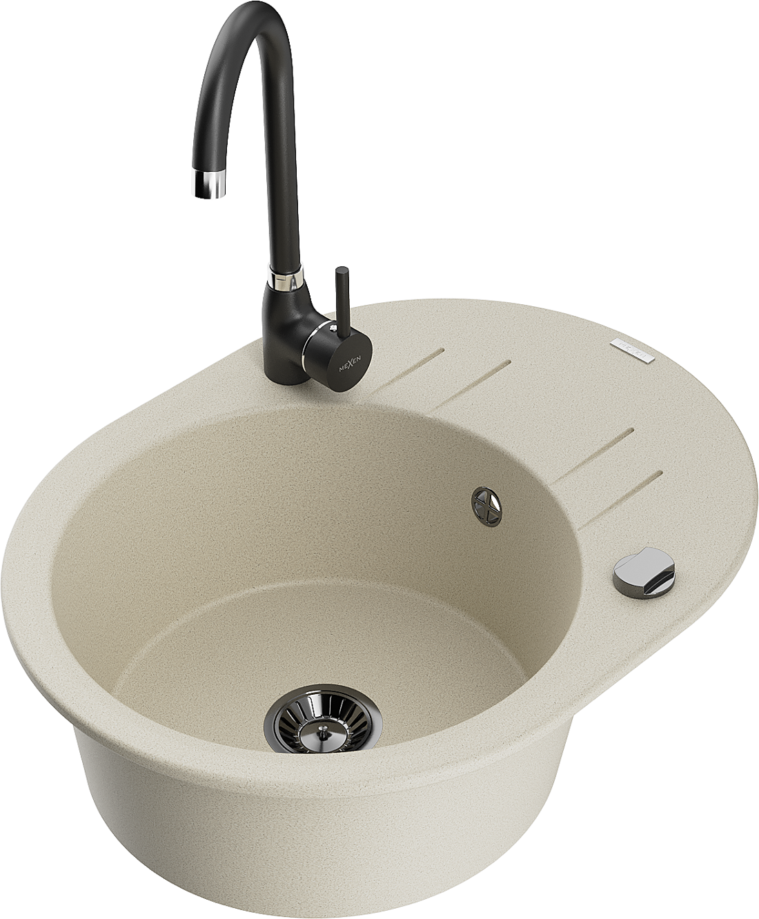 Mexen Kevin zlewozmywak granitowy 1-komorowy z ociekaczem i baterią kuchenną Telma, beżowy - 6517-69-670200-70