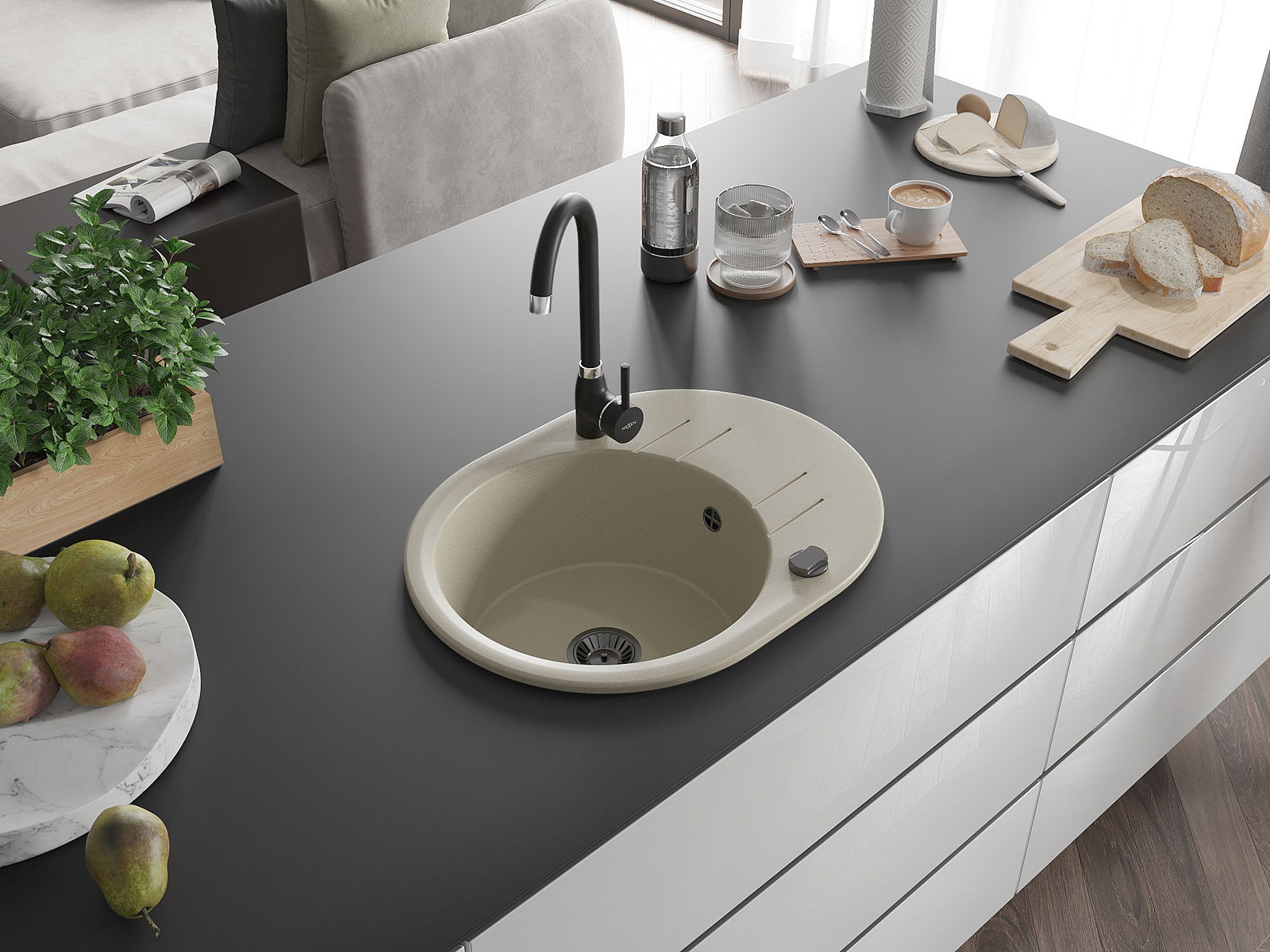 Zlewozmywak został wykonany z wysokiej jakości granitu. Stanowi eleganckie, a przede wszystkim praktyczne uzupełnienie każdej kuchni, niezależnie od jej stylu. Wysoka jakość oraz trwałość granitu zapewniają wieloletnie użytkowanie.