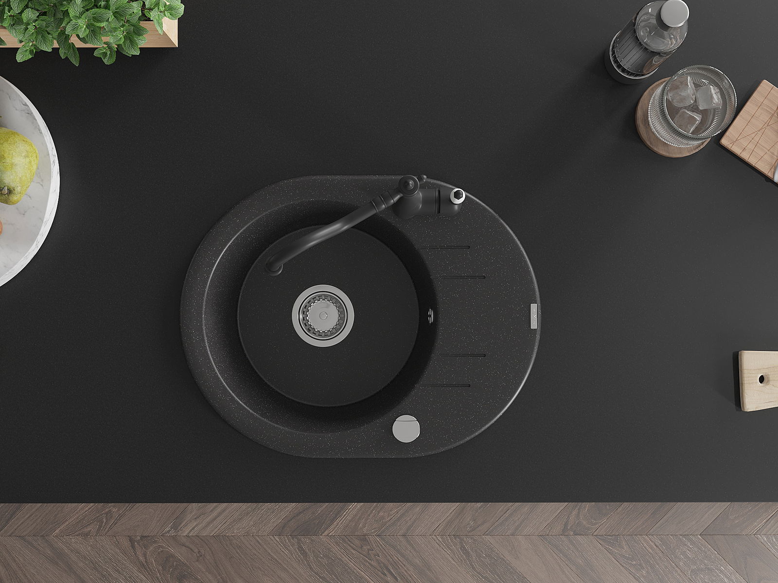 Dzięki zastosowaniu uniwersalnego systemu mocowania, zlew jest odwracalny, a ociekacz może zostać zamontowany na blacie po lewej lub prawej stronie. W ten sposób możesz z łatwością dopasować stronę do swoich potrzeb i warunków.