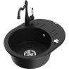 Mexen Kevin zlewozmywak granitowy 1-komorowy z ociekaczem i baterią kuchenną Carla, czarny/złoty metalik - 6517-75-670700-70