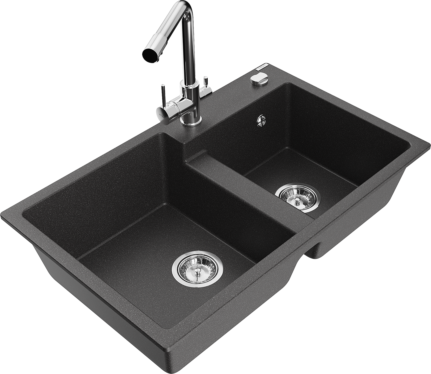 Mexen Tomas zlewozmywak granitowy 2-komorowy z baterią kuchenną Duero, czarny nakrapiany - 6516-76-671600-00