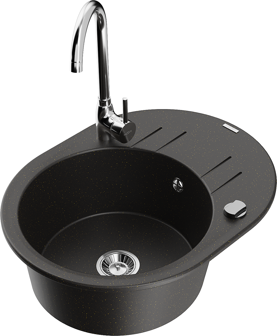 Mexen Kevin zlewozmywak granitowy 1-komorowy z ociekaczem i baterią kuchenną Telma, czarny/złoty metalik - 6517-75-670200-00