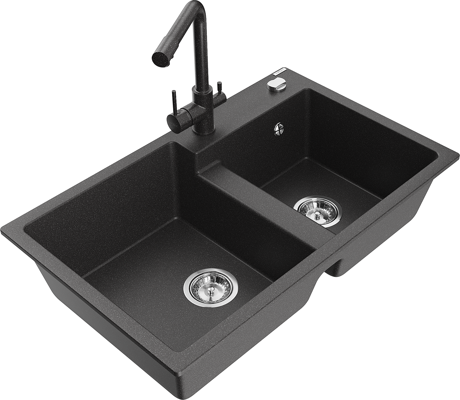 Mexen Tomas zlewozmywak granitowy 2-komorowy z baterią kuchenną Duero, czarny nakrapiany - 6516-76-671600-76