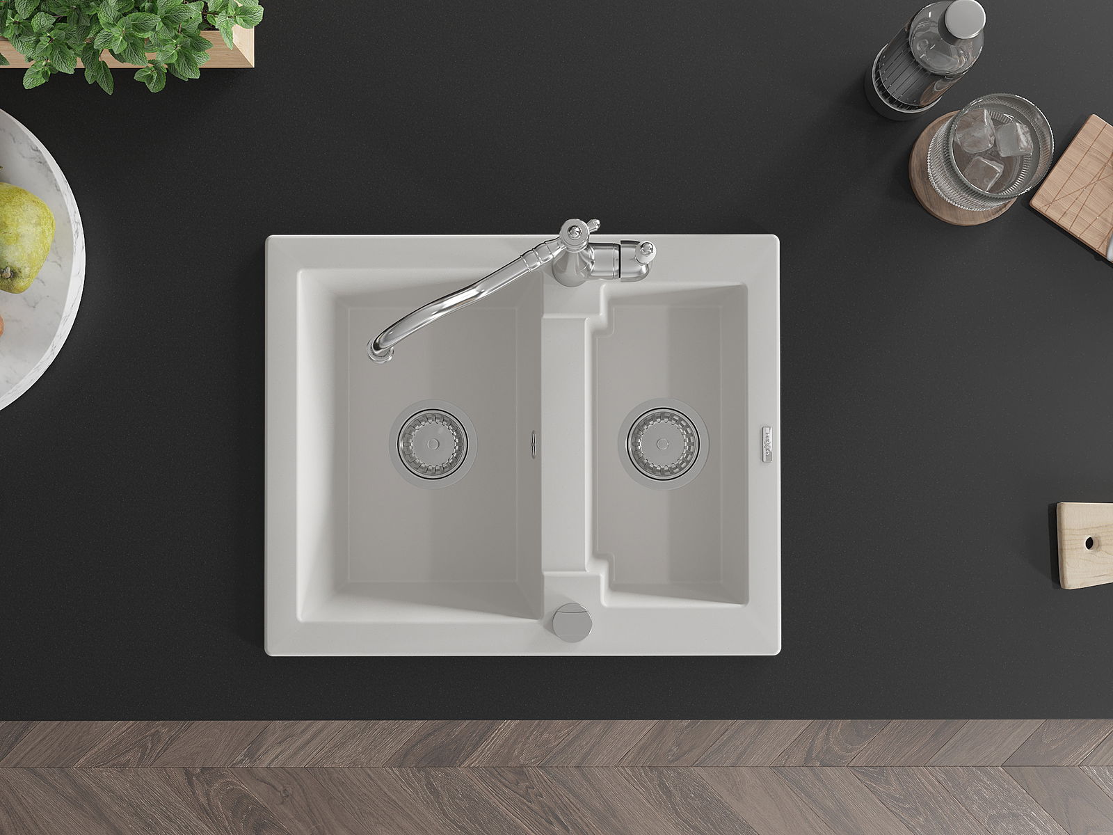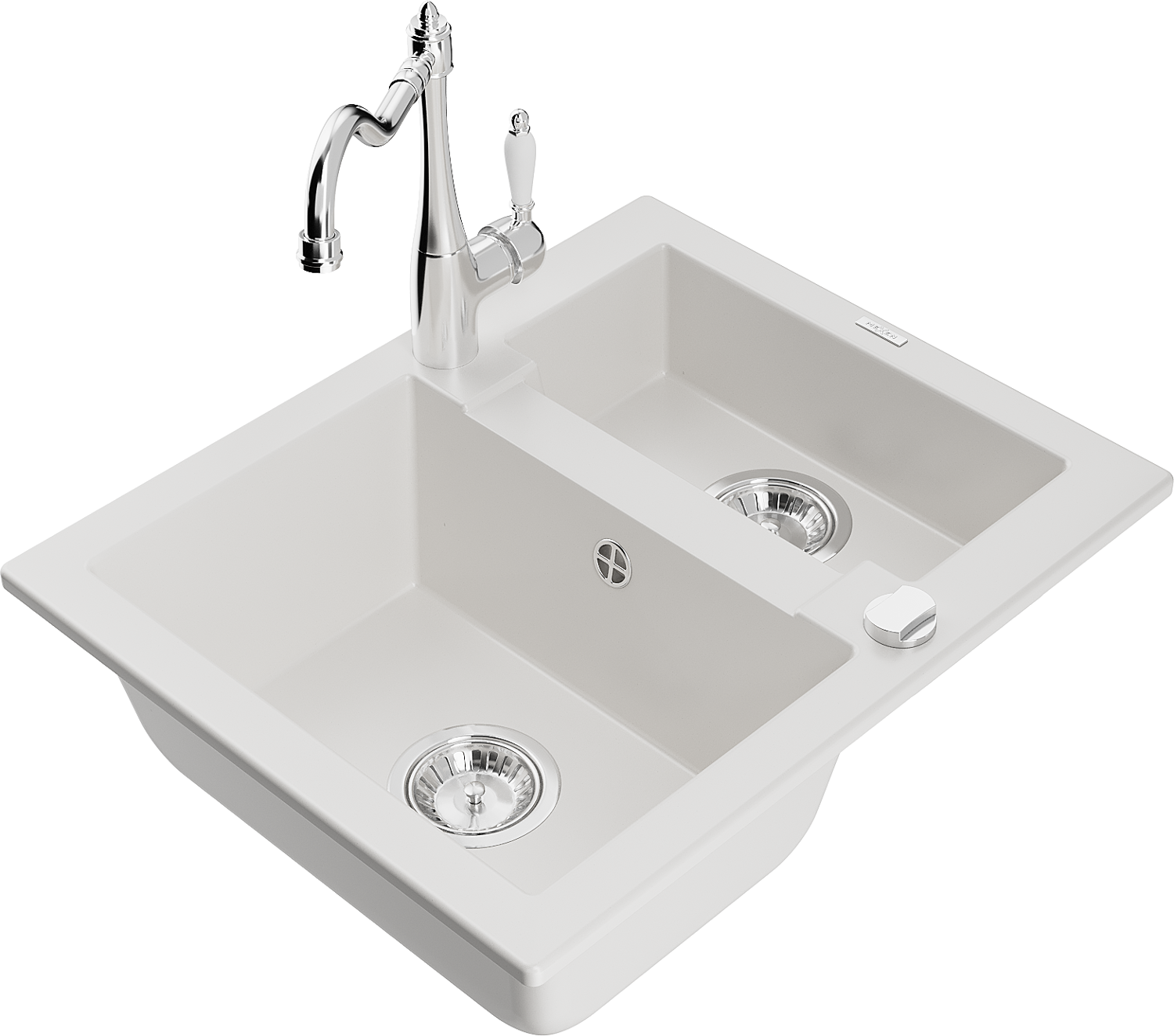 Mexen Carlos zlewozmywak granitowy 1,5-komorowy z baterią kuchenną Carla, biały - 6518-20-670700-00