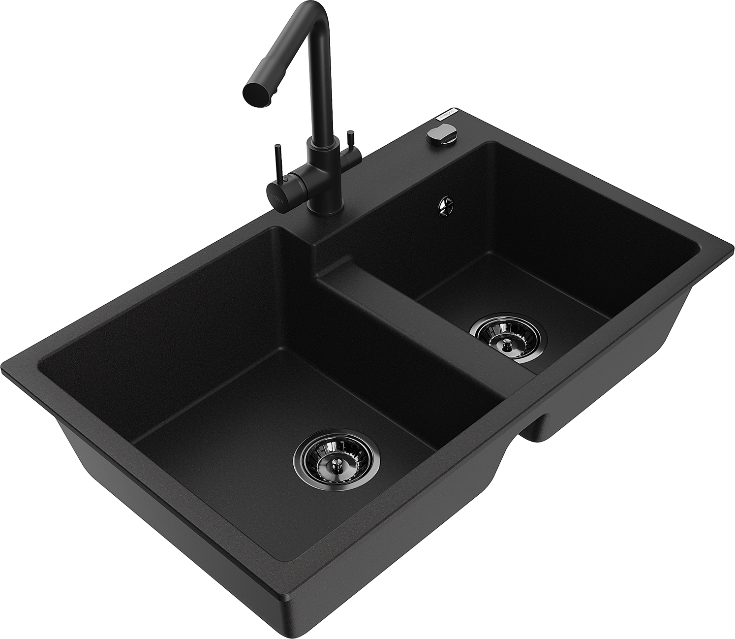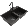 Mexen Tomas zlewozmywak granitowy 2-komorowy z baterią kuchenną Duero, czarny - 6516-77-671600-70-B
