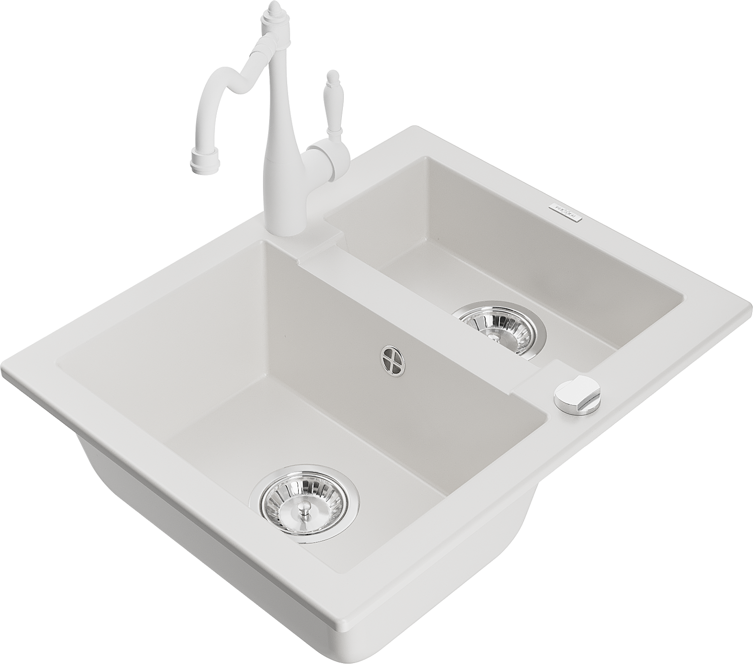 Mexen Carlos zlewozmywak granitowy 1,5-komorowy z baterią kuchenną Carla, biały - 6518-20-670700-20