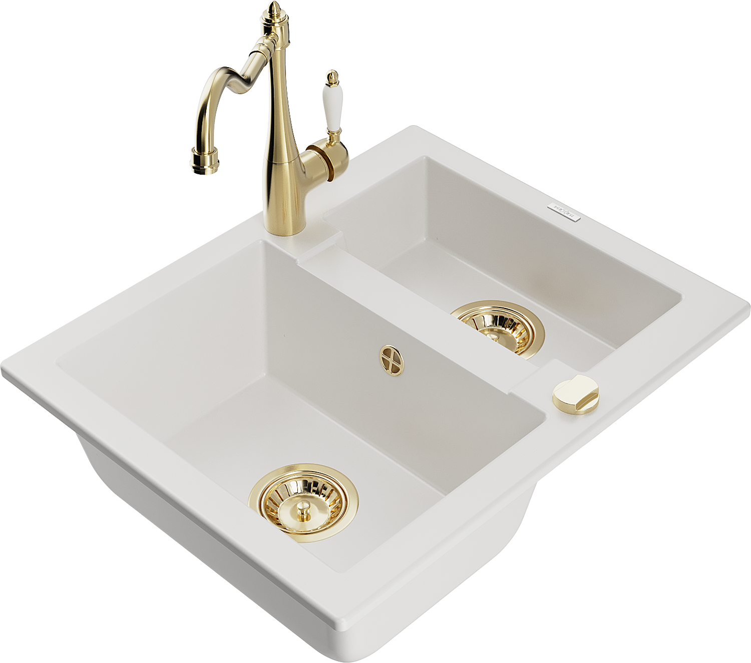 Mexen Carlos zlewozmywak granitowy 1,5-komorowy z baterią kuchenną Carla, biały - 6518-20-670700-50
