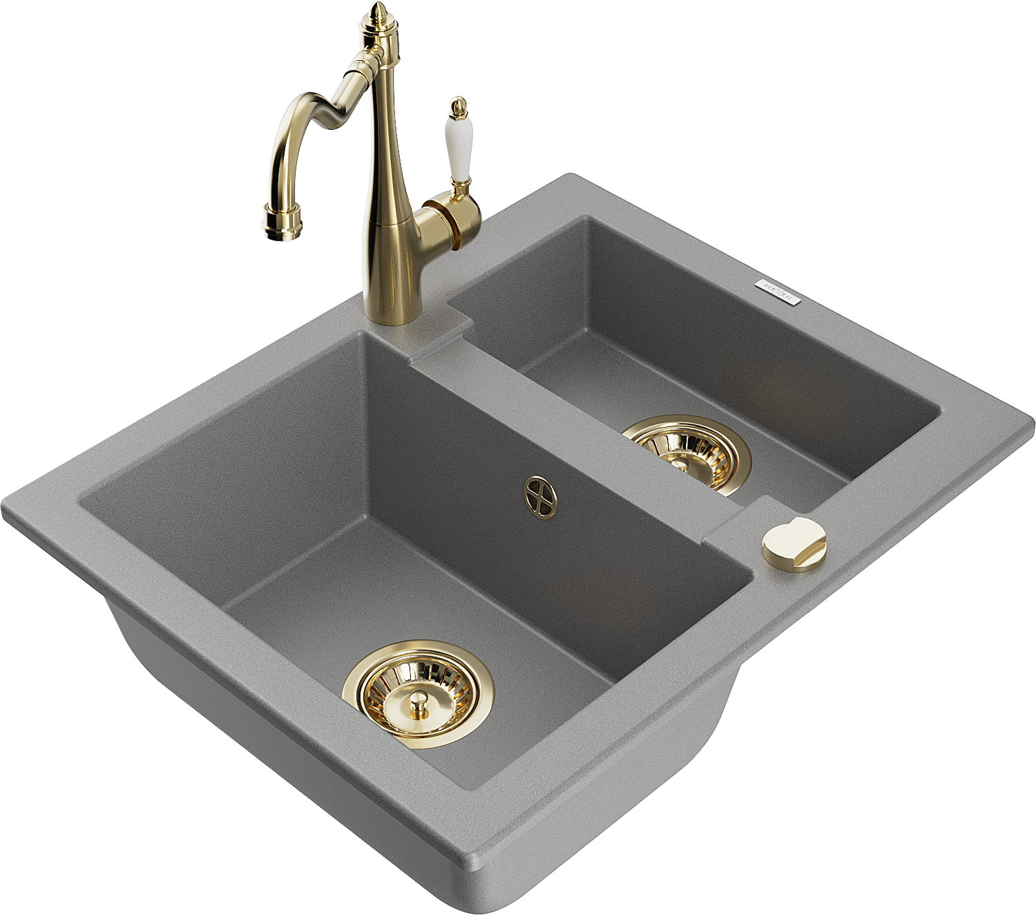 Mexen Carlos zlewozmywak granitowy 1,5-komorowy z baterią kuchenną Carla, szary - 6518-71-670700-50