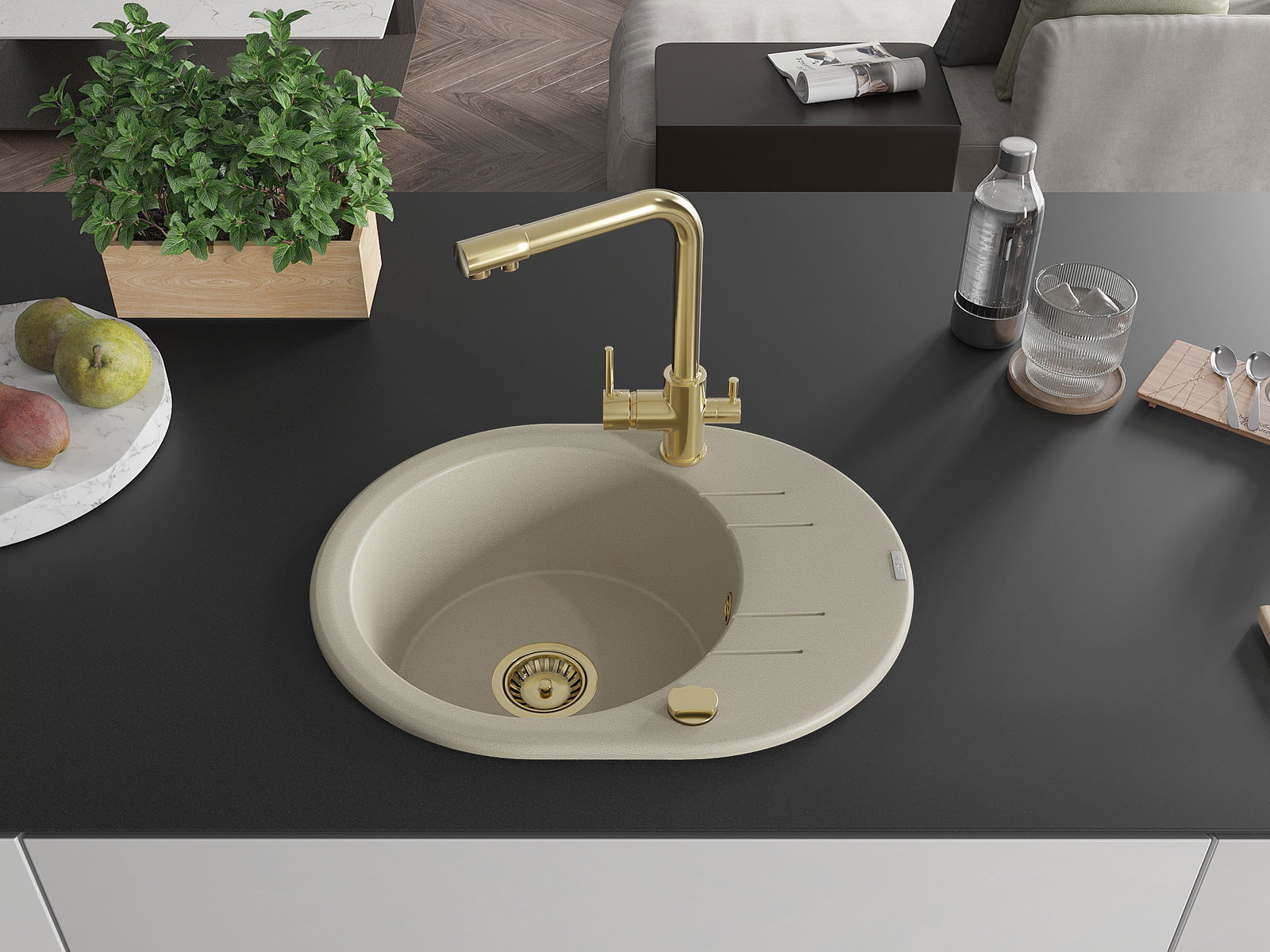 Zlewozmywak został wykonany z wysokiej jakości granitu. Stanowi eleganckie, a przede wszystkim praktyczne uzupełnienie każdej kuchni, niezależnie od jej stylu. Wysoka jakość oraz trwałość granitu zapewniają wieloletnie użytkowanie.