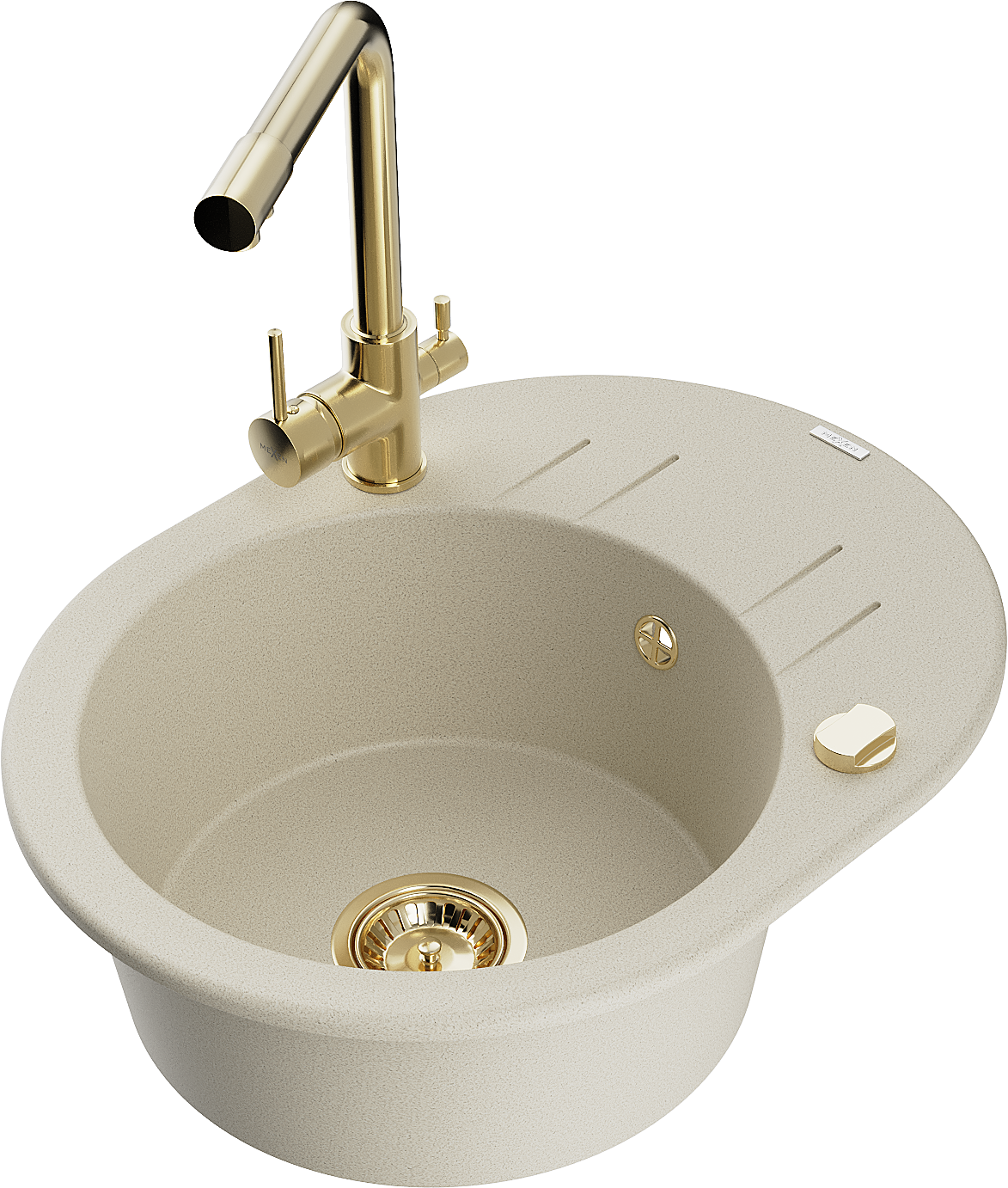 Mexen Kevin zlewozmywak granitowy 1-komorowy z ociekaczem i baterią kuchenną Duero, beżowy - 6517-69-671600-50