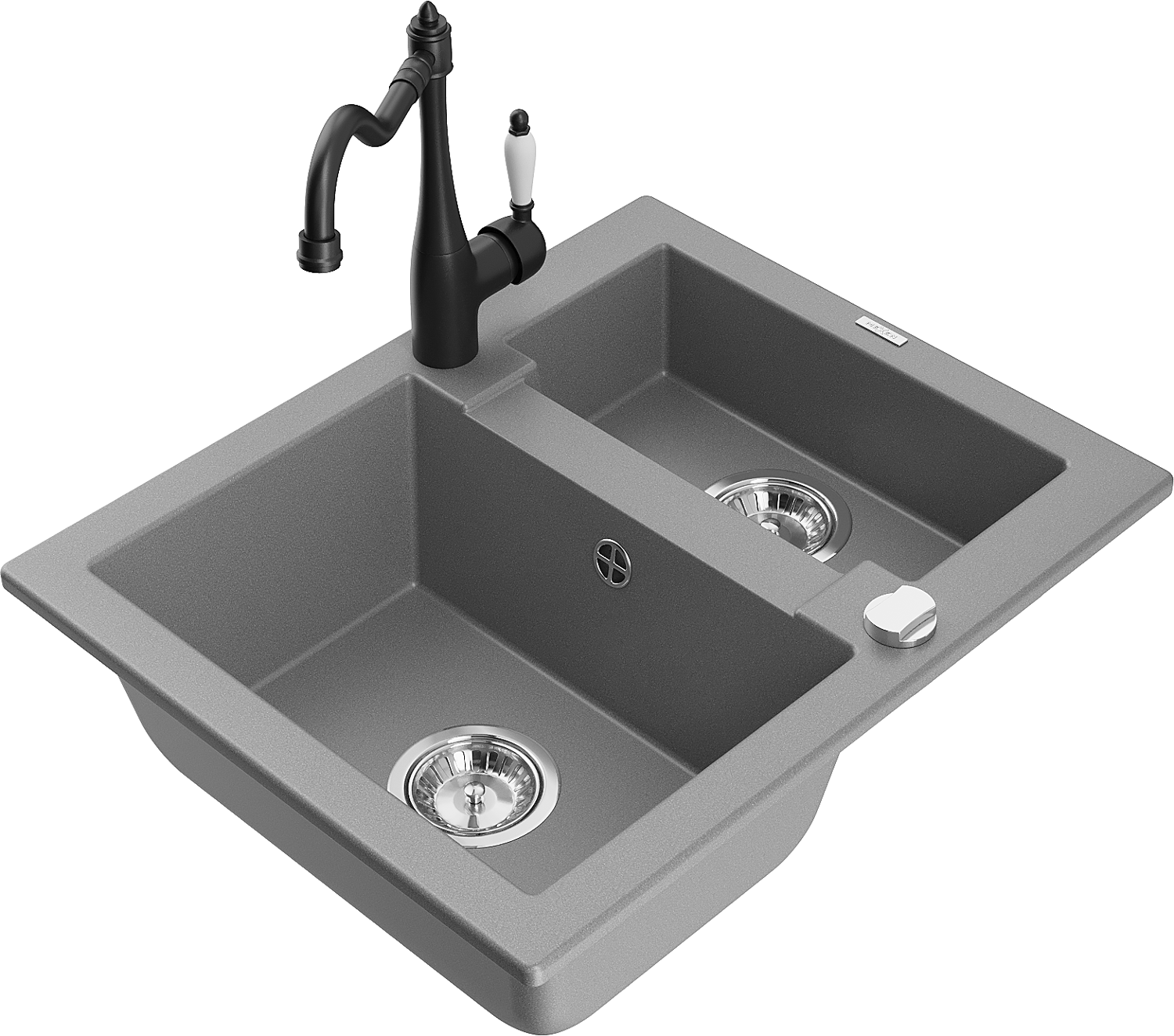 Mexen Carlos zlewozmywak granitowy 1,5-komorowy z baterią kuchenną Carla, szary - 6518-71-670700-70