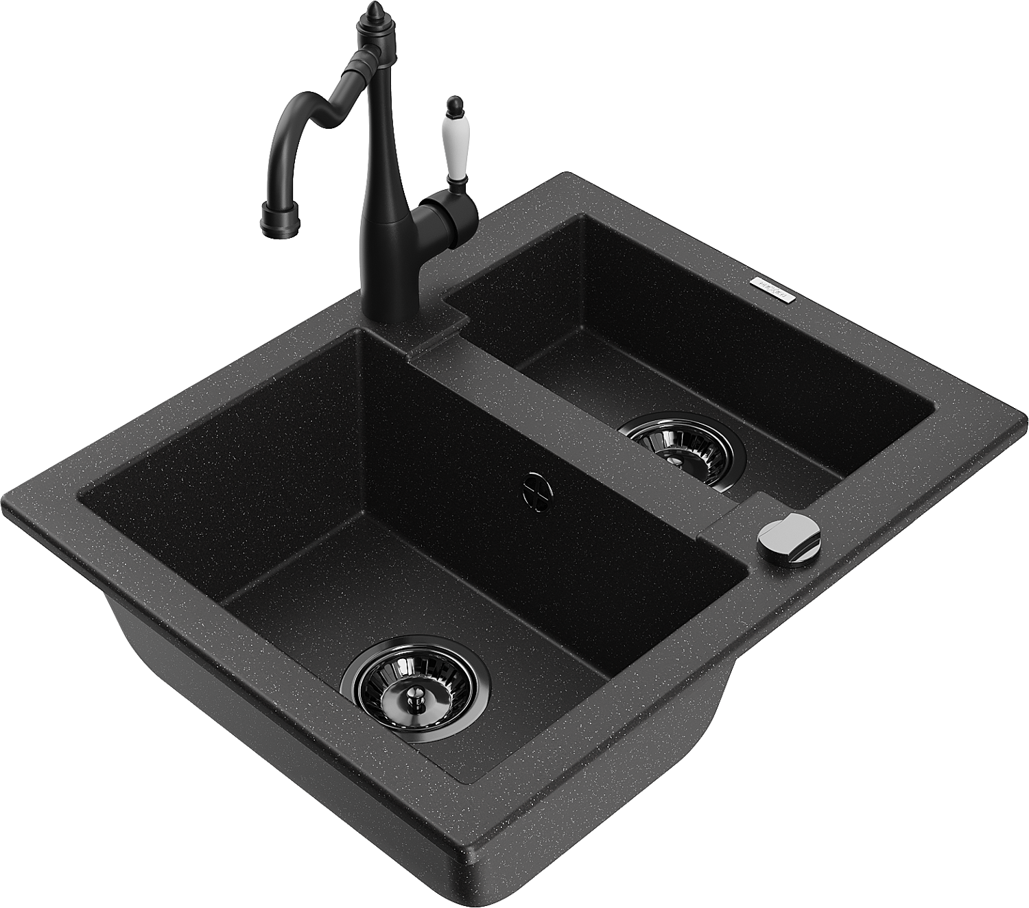 Mexen Carlos zlewozmywak granitowy 1,5-komorowy z baterią kuchenną Carla, czarny/srebrny metalik - 6518-73-670700-70-B