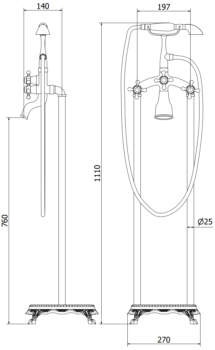 Mexen Retro wolnostojąca bateria wannowa, chrom - 75933-00