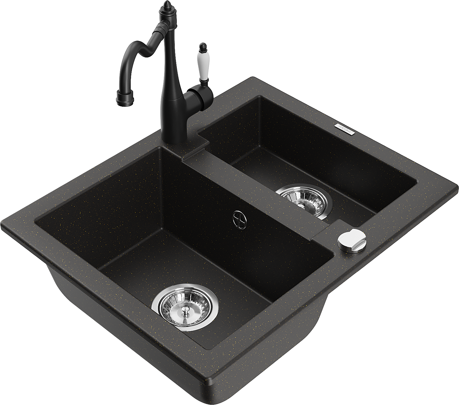 Mexen Carlos zlewozmywak granitowy 1,5-komorowy z baterią kuchenną Carla, czarny/złoty metalik - 6518-75-670700-70