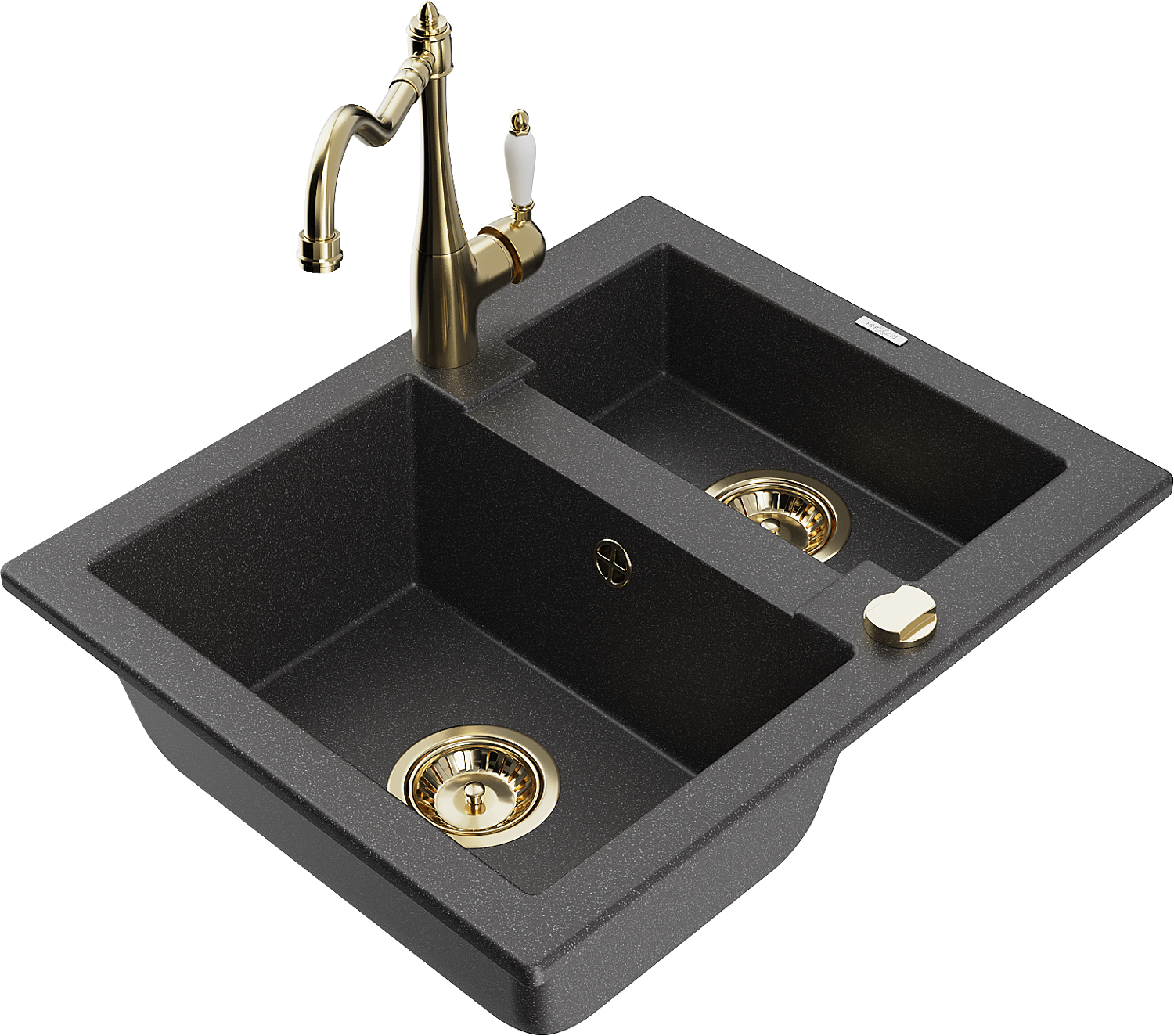 Mexen Carlos zlewozmywak granitowy 1,5-komorowy z baterią kuchenną Carla, czarny nakrapiany - 6518-76-670700-50