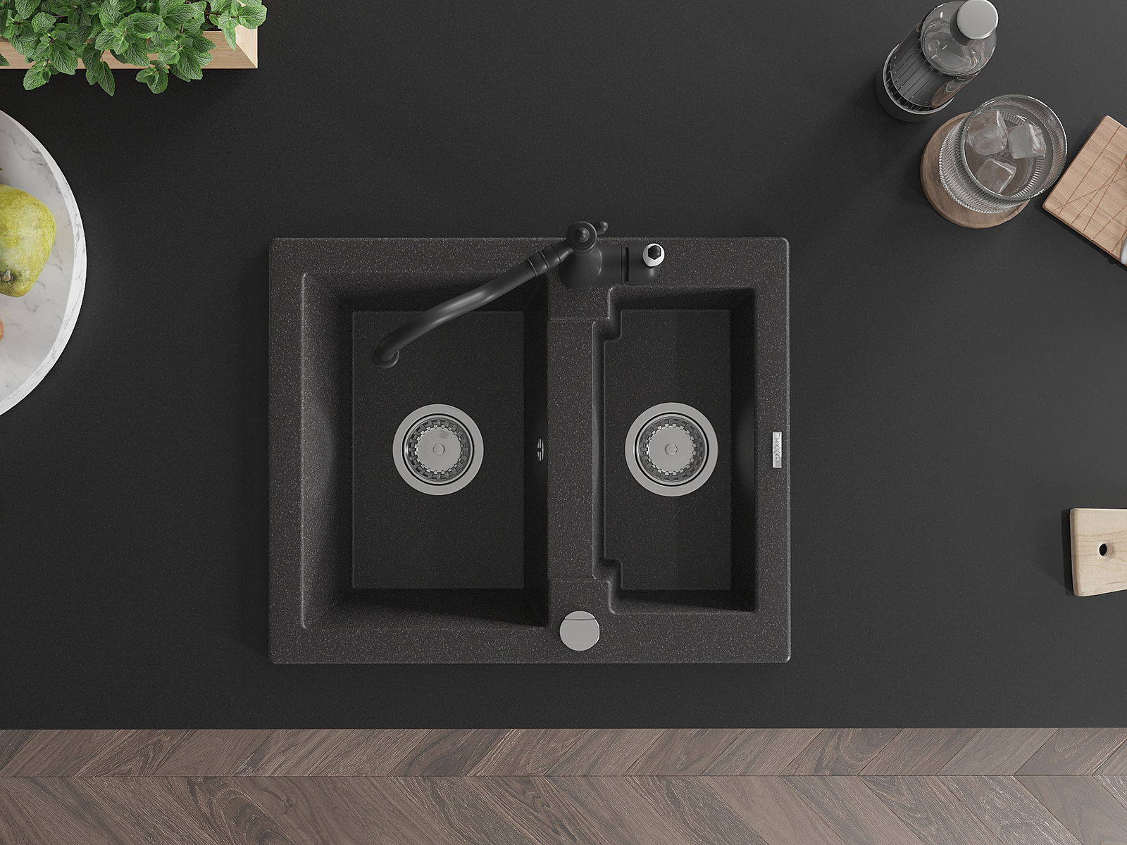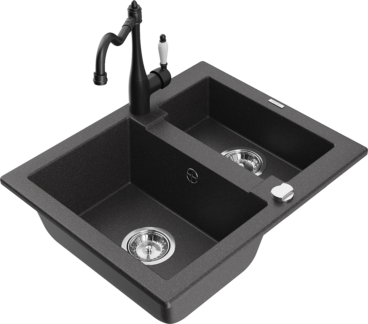 Mexen Carlos zlewozmywak granitowy 1,5-komorowy z baterią kuchenną Carla, czarny nakrapiany - 6518-76-670700-70