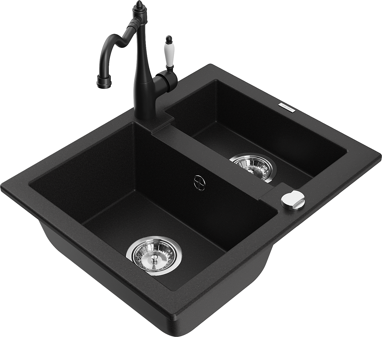 Mexen Carlos zlewozmywak granitowy 1,5-komorowy z baterią kuchenną Carla, czarny - 6518-77-670700-70