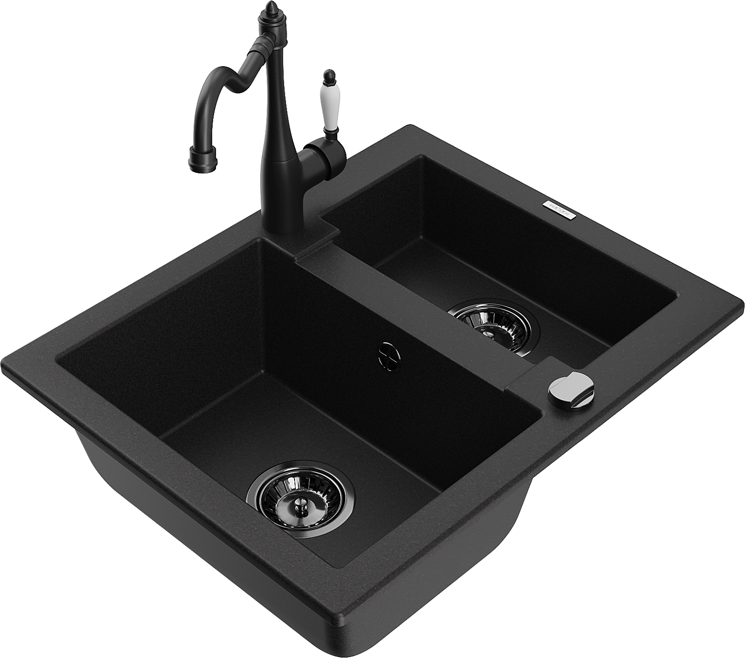 Mexen Carlos zlewozmywak granitowy 1,5-komorowy z baterią kuchenną Carla, czarny - 6518-77-670700-70-B