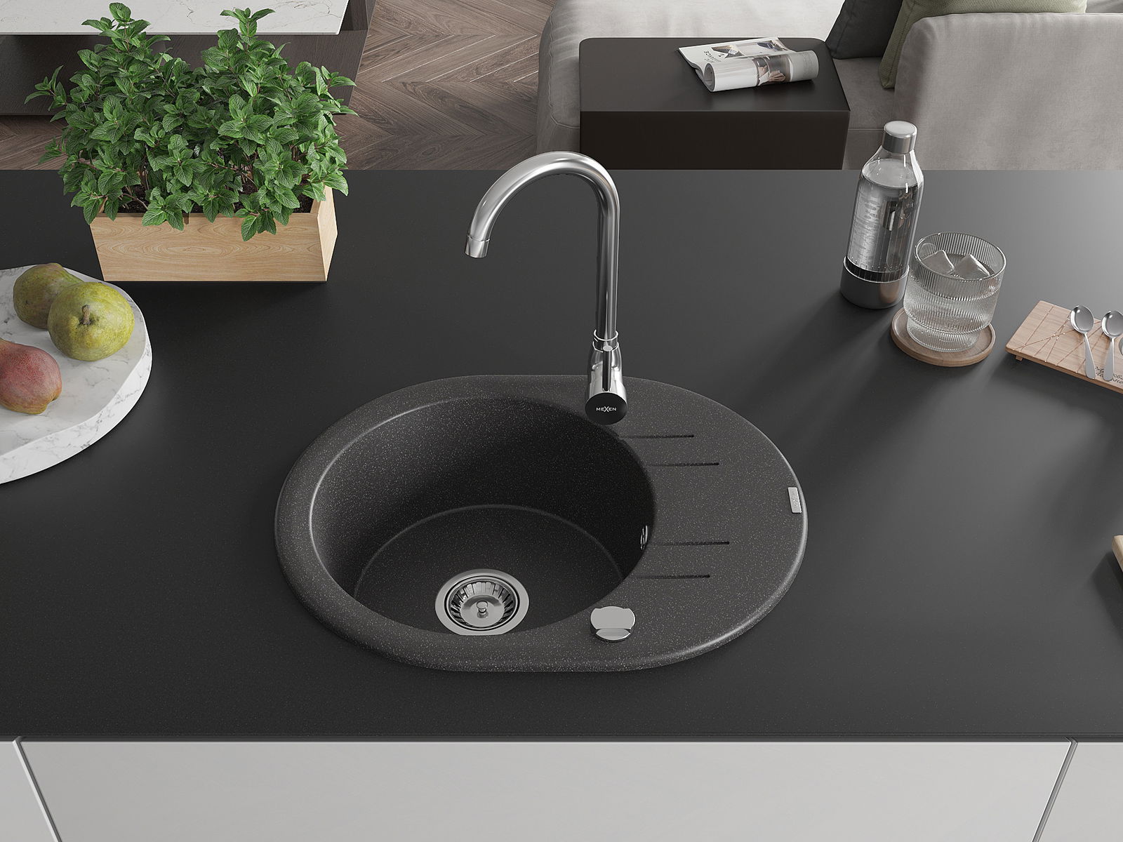 Zlewozmywak został wykonany z wysokiej jakości granitu. Stanowi eleganckie, a przede wszystkim praktyczne uzupełnienie każdej kuchni, niezależnie od jej stylu. Wysoka jakość oraz trwałość granitu zapewniają wieloletnie użytkowanie.