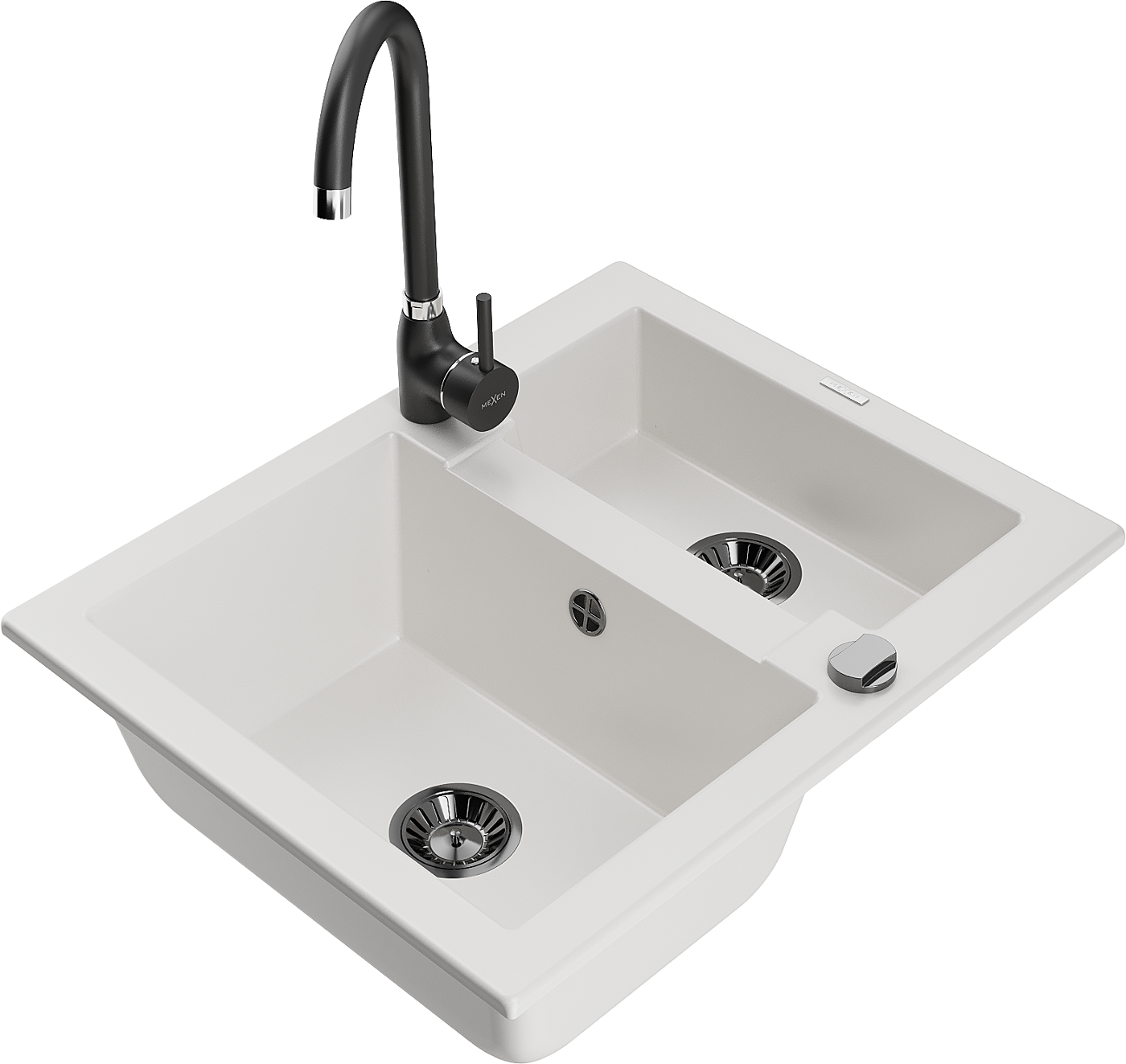 Mexen Carlos zlewozmywak granitowy 1,5-komorowy z baterią kuchenną Telma, biały - 6518-20-670200-70