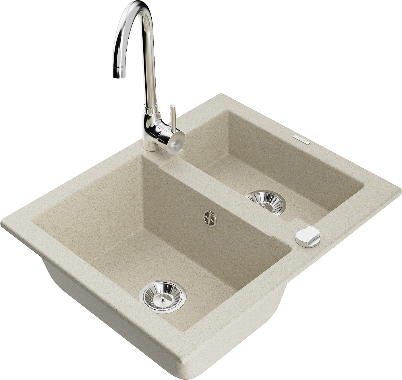 Mexen Carlos zlewozmywak granitowy 1,5-komorowy z baterią kuchenną Telma, beżowy - 6518-69-670200-00