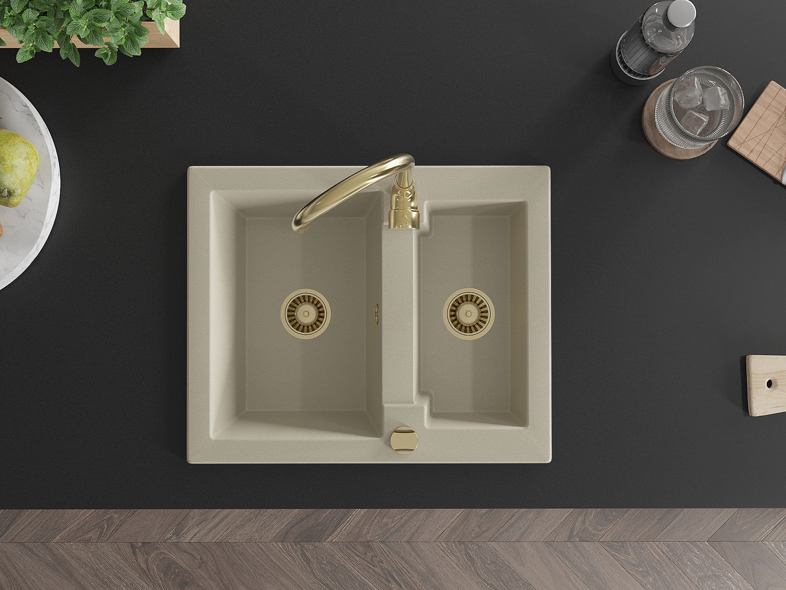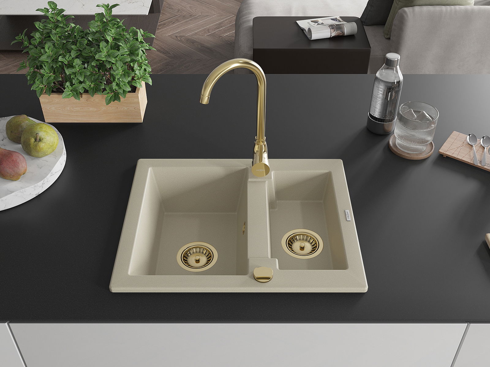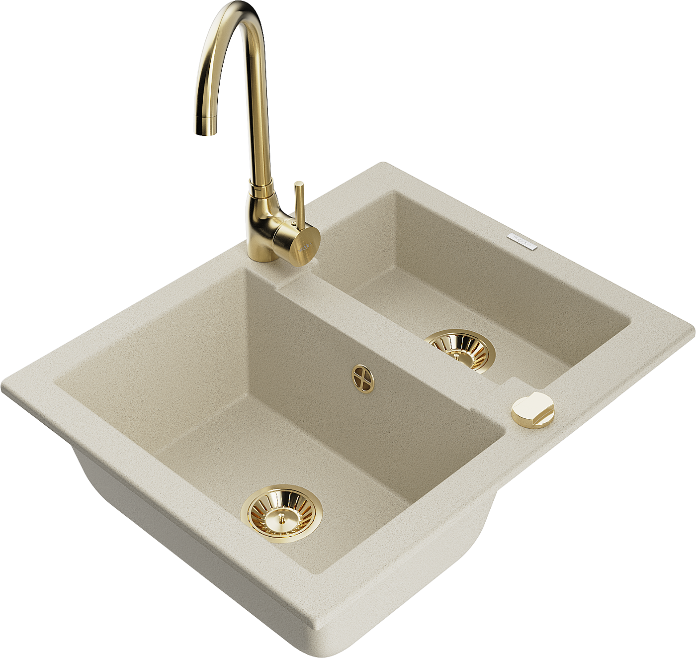Mexen Carlos zlewozmywak granitowy 1,5-komorowy z baterią kuchenną Telma, beżowy - 6518-69-670200-50