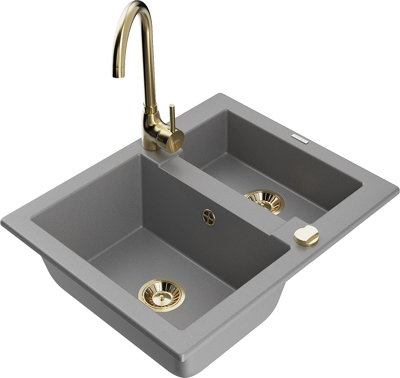 Mexen Carlos zlewozmywak granitowy 1,5-komorowy z baterią kuchenną Telma, szary - 6518-71-670200-50