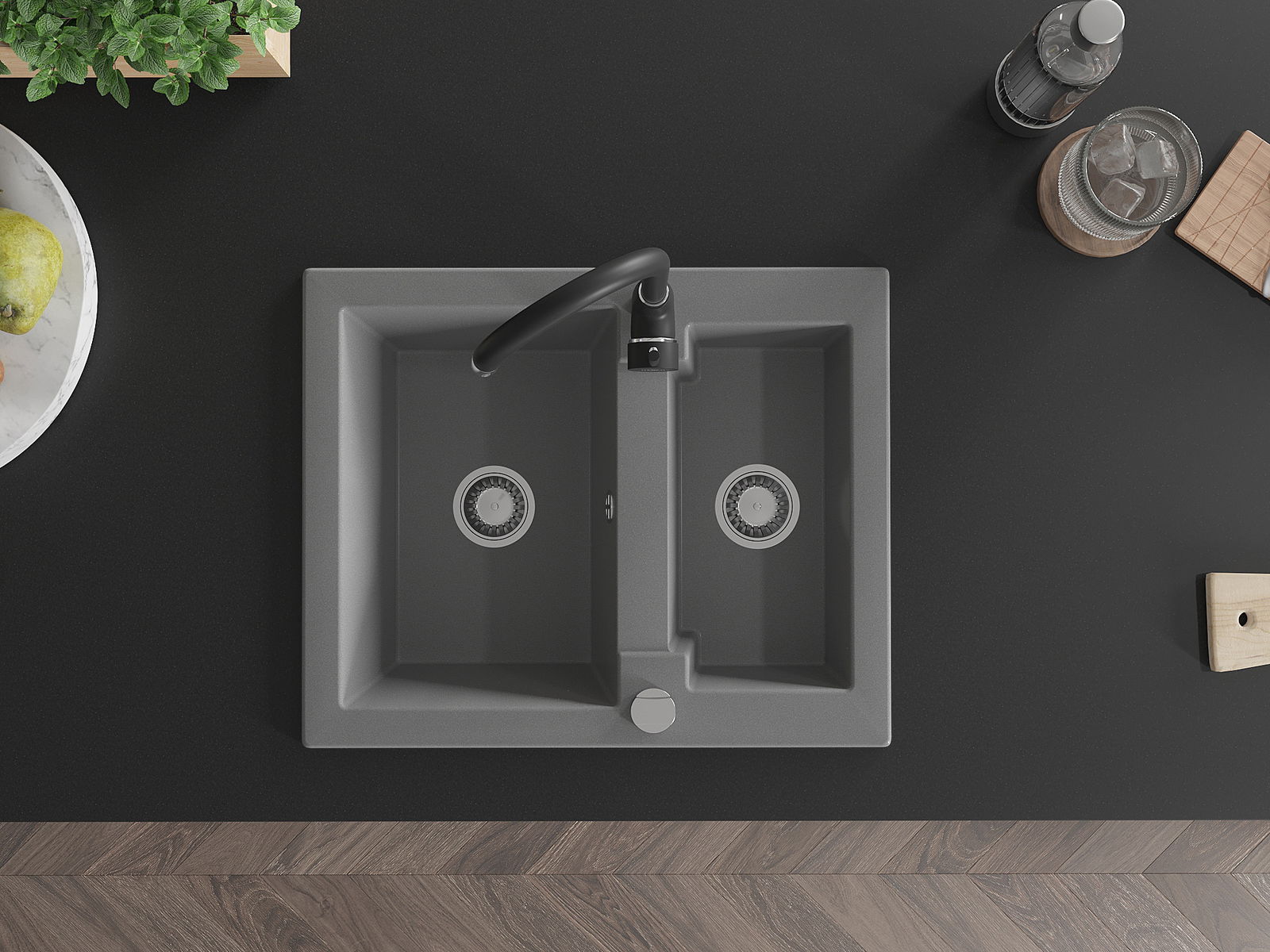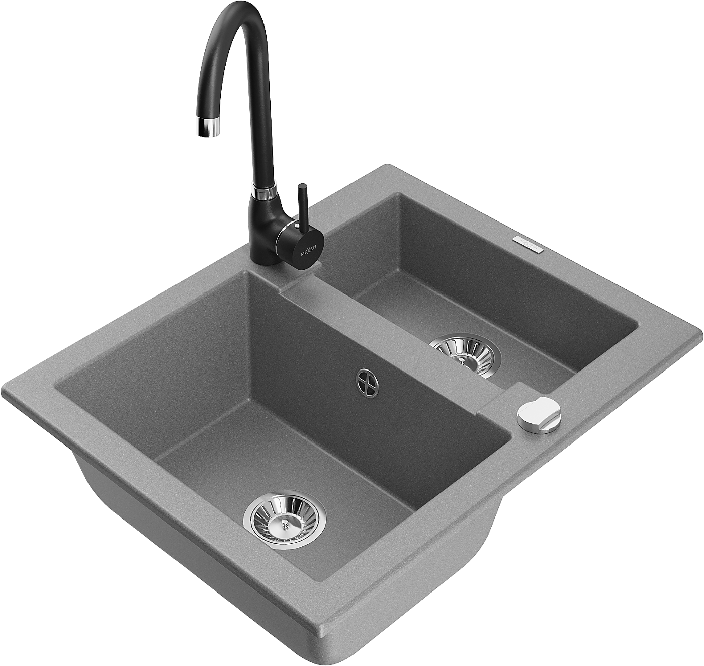 Mexen Carlos zlewozmywak granitowy 1,5-komorowy z baterią kuchenną Telma, szary - 6518-71-670200-70