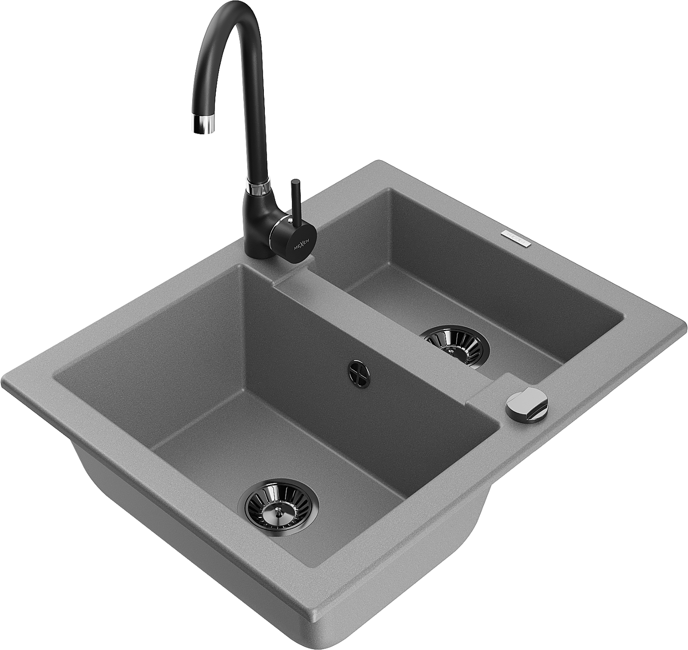 Mexen Carlos zlewozmywak granitowy 1,5-komorowy z baterią kuchenną Telma, szary - 6518-71-670200-70-B