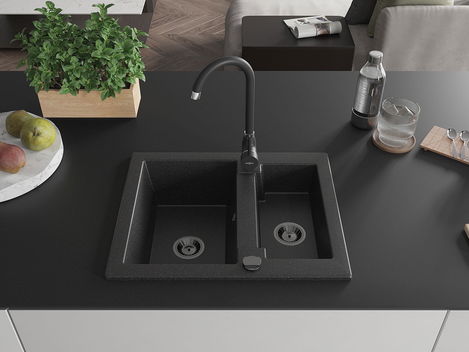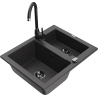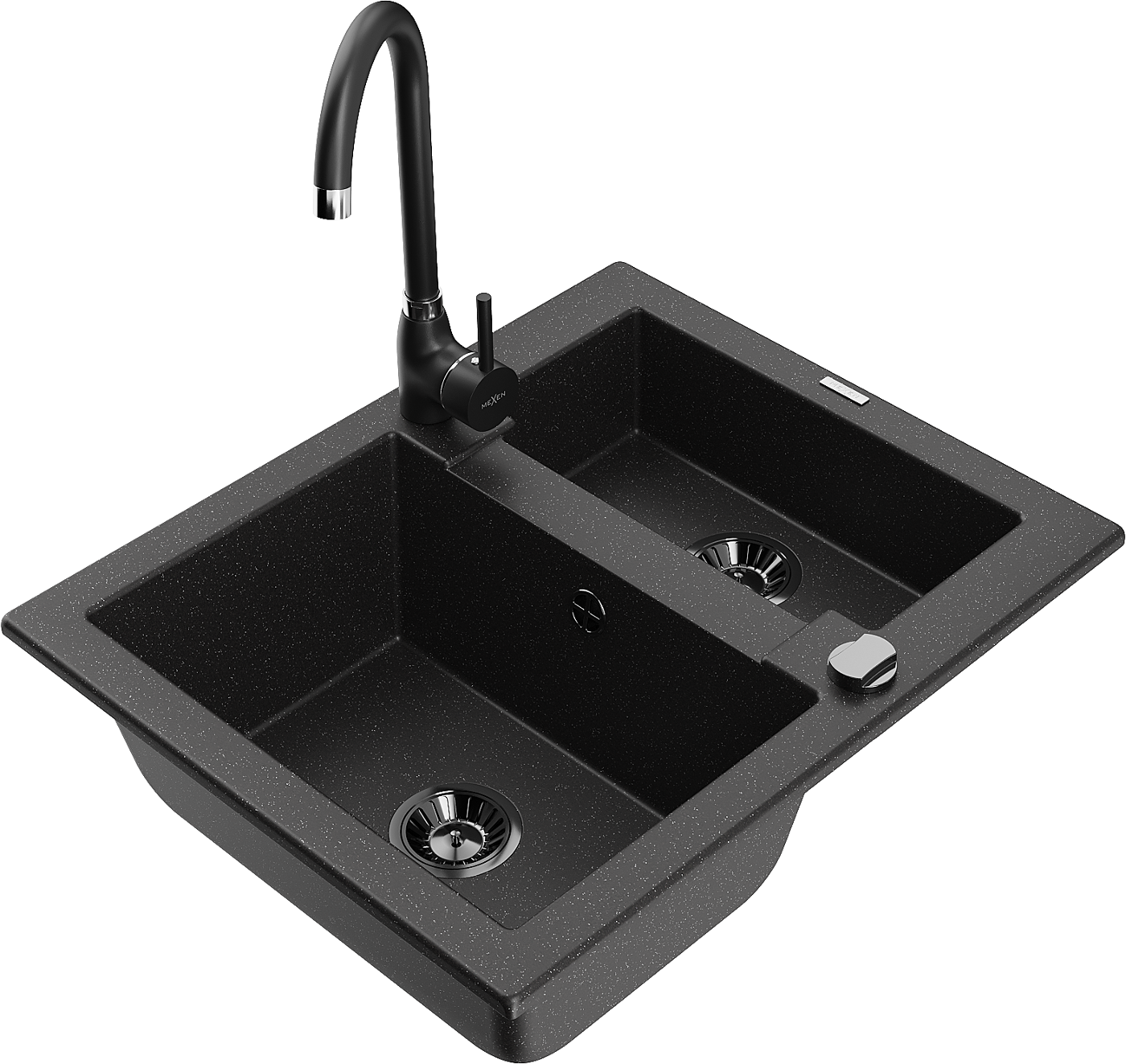 Mexen Carlos zlewozmywak granitowy 1,5-komorowy z baterią kuchenną Telma, czarny/srebrny metalik - 6518-73-670200-70-B
