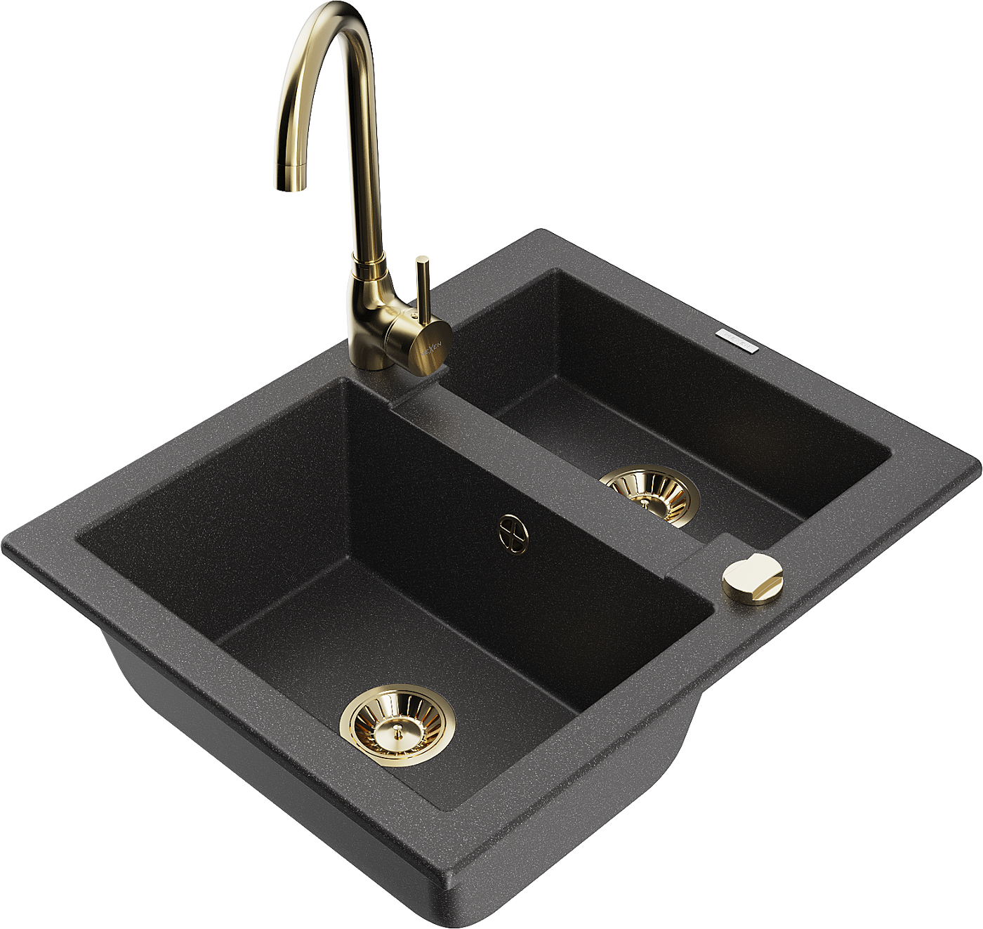 Mexen Carlos zlewozmywak granitowy 1,5-komorowy z baterią kuchenną Telma, czarny nakrapiany - 6518-76-670200-50