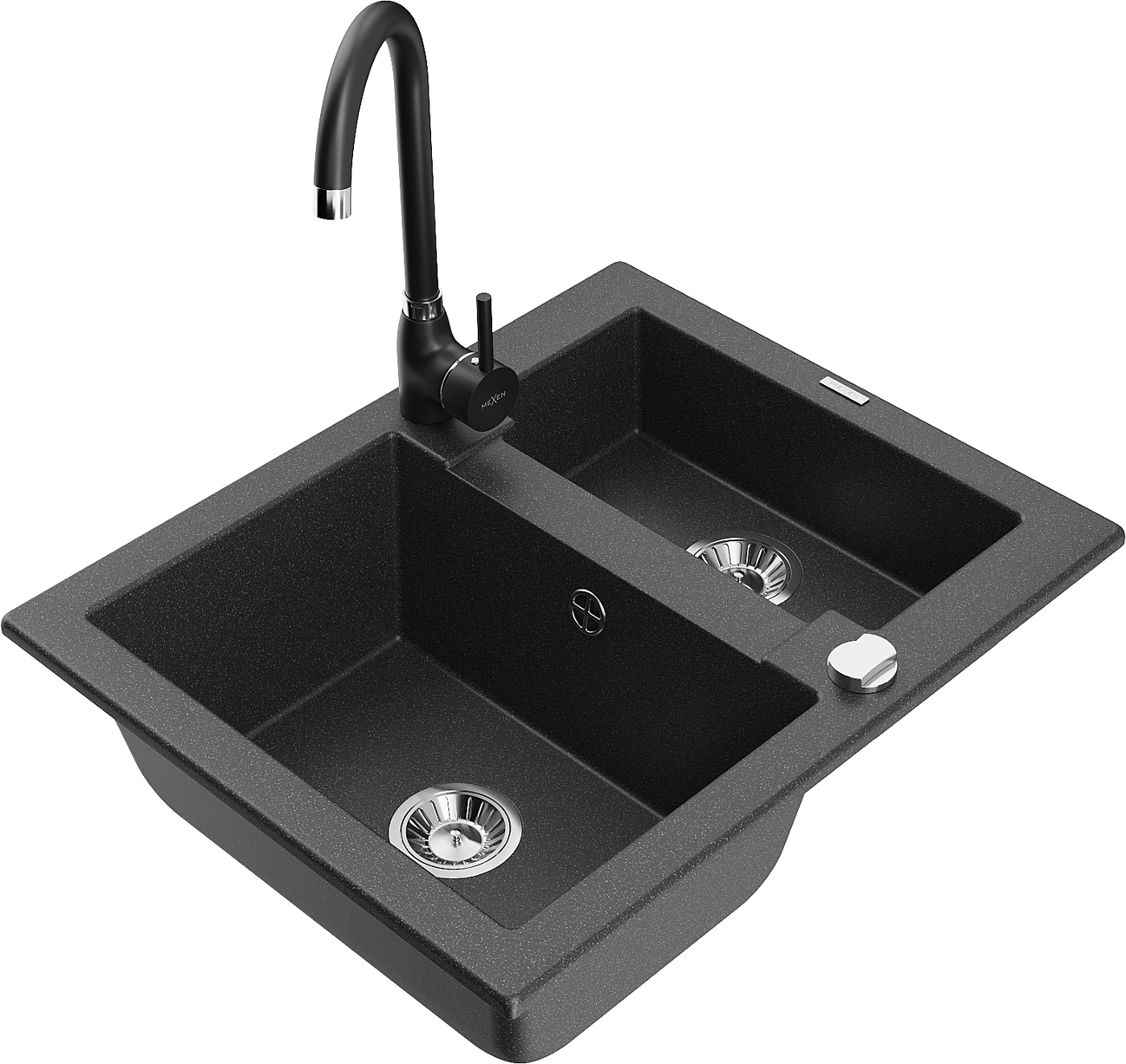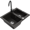 Mexen Carlos zlewozmywak granitowy 1,5-komorowy z baterią kuchenną Telma, czarny nakrapiany - 6518-76-670200-70