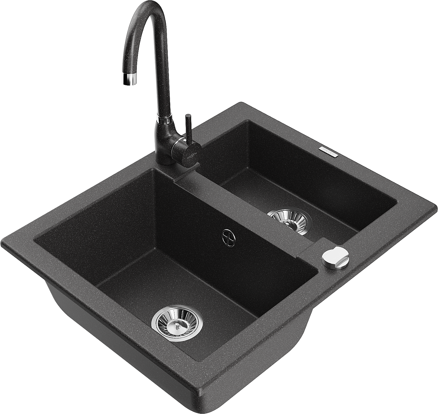 Mexen Carlos zlewozmywak granitowy 1,5-komorowy z baterią kuchenną Telma, czarny nakrapiany - 6518-76-670200-76