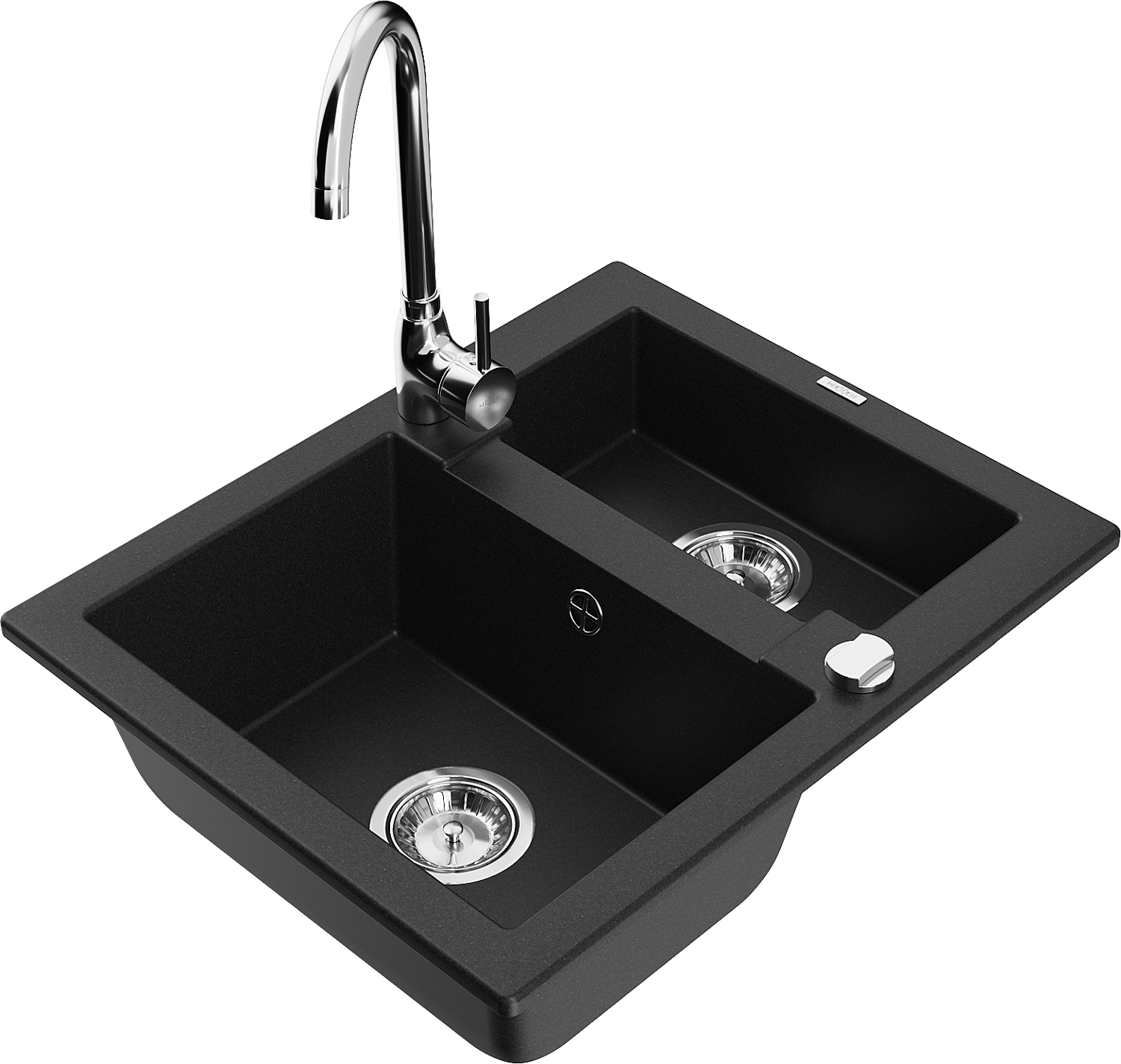Mexen Carlos zlewozmywak granitowy 1,5-komorowy z baterią kuchenną Telma, czarny - 6518-77-670200-00