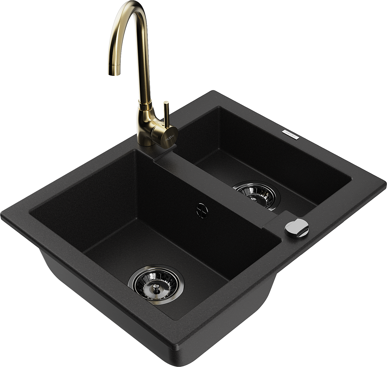 Mexen Carlos zlewozmywak granitowy 1,5-komorowy z baterią kuchenną Telma, czarny - 6518-77-670200-50-B