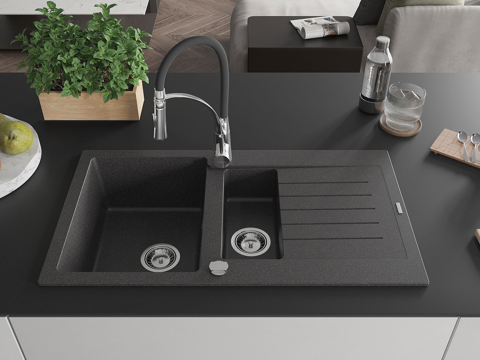 Zlewozmywak został wykonany z wysokiej jakości granitu. Stanowi eleganckie, a przede wszystkim praktyczne uzupełnienie każdej kuchni, niezależnie od jej stylu. Wysoka jakość oraz trwałość granitu zapewniają wieloletnie użytkowanie.