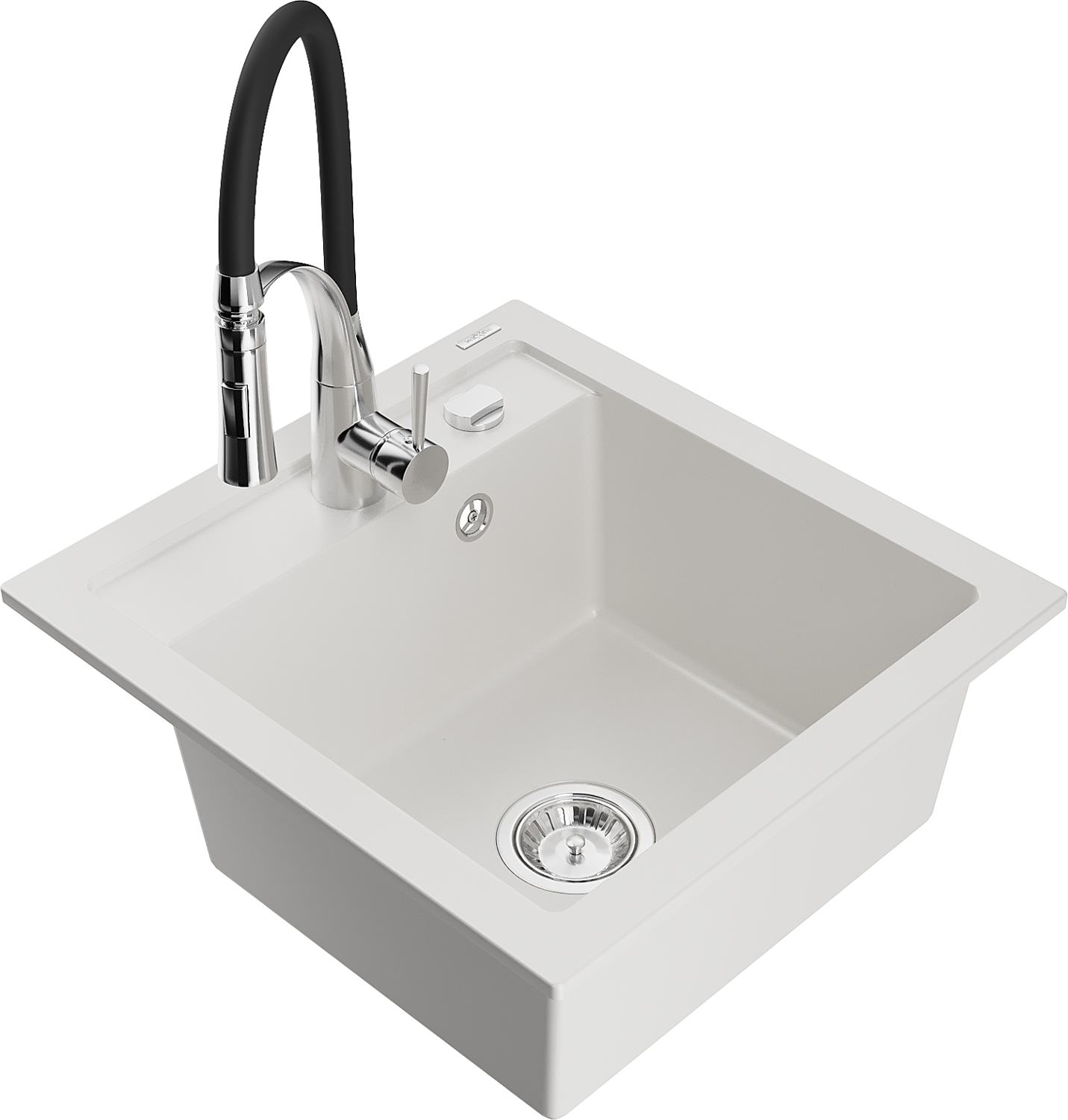 Mexen Vito zlewozmywak granitowy 1-komorowy z baterią kuchenną Aster, biały - 6503-20-73450-07