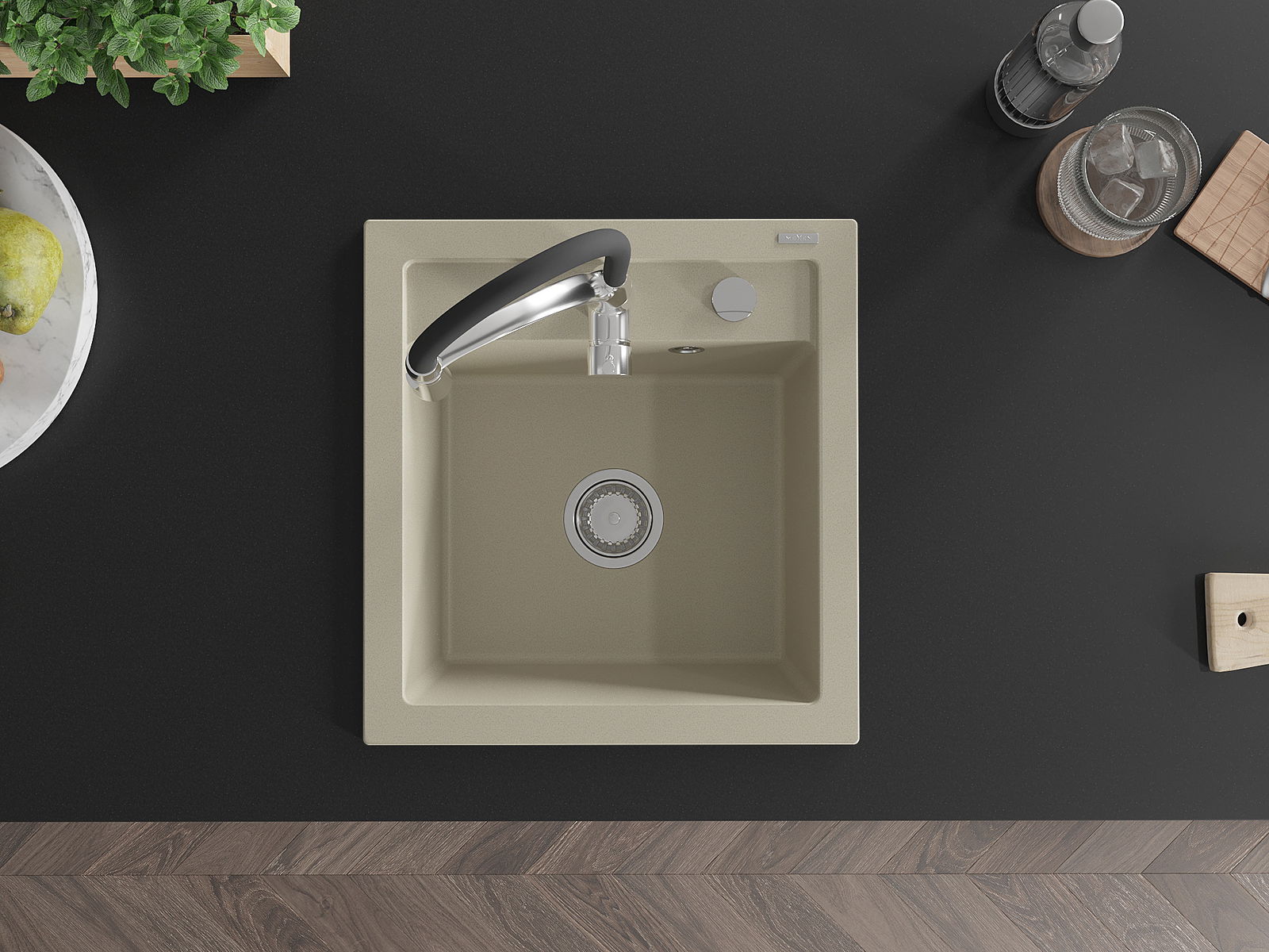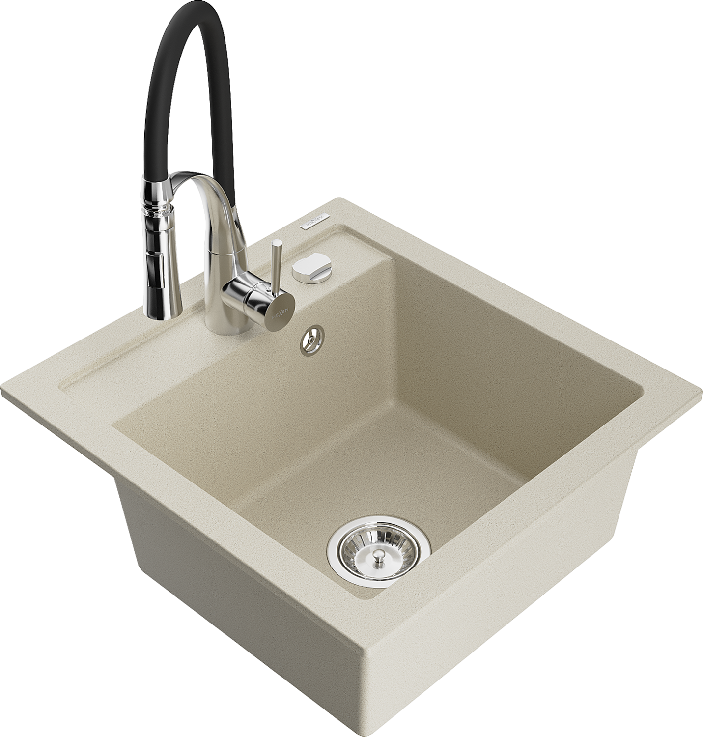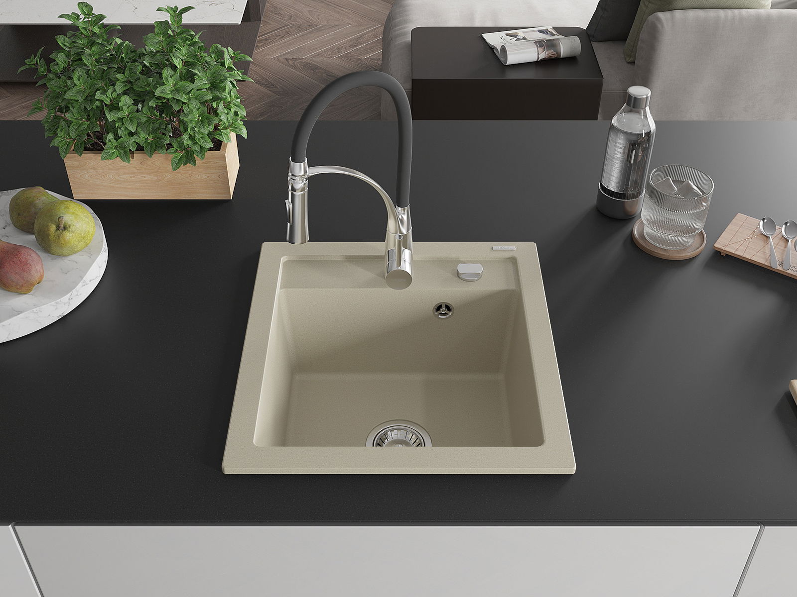 Mexen Vito zlewozmywak granitowy 1-komorowy z baterią kuchenną Aster, beżowy - 6503-69-73450-07