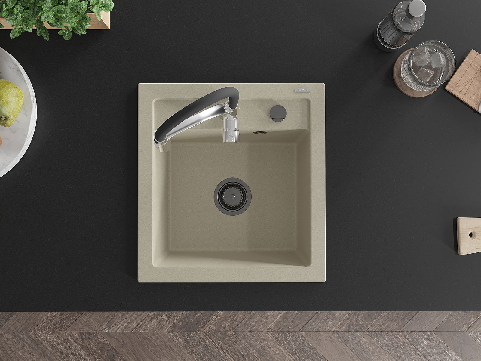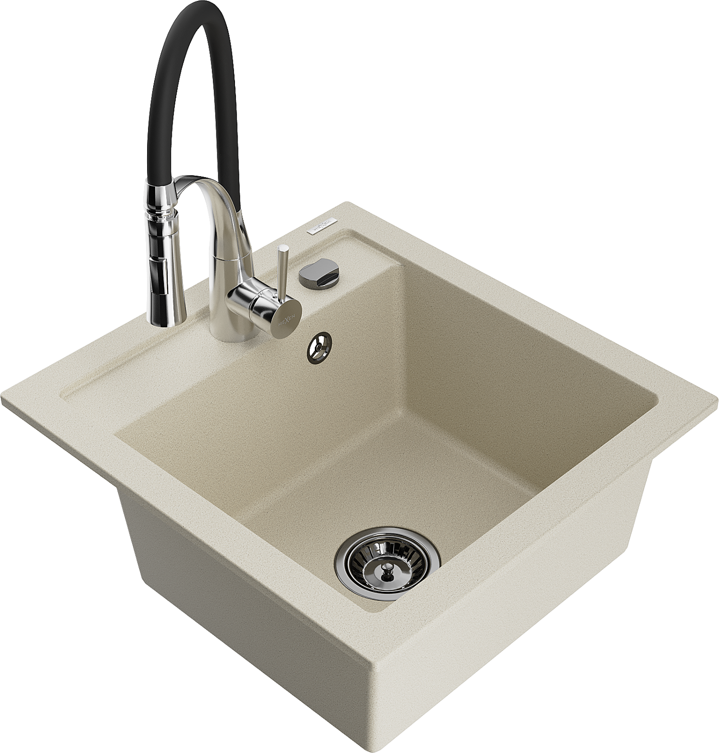 Mexen Vito zlewozmywak granitowy 1-komorowy z baterią kuchenną Aster, beżowy - 6503-69-73450-07-B