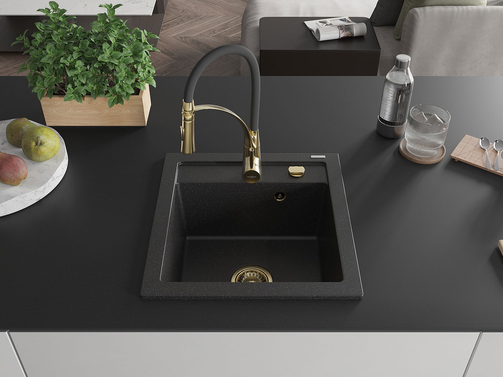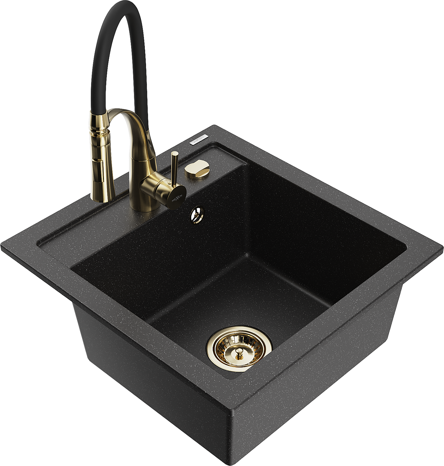 Mexen Vito zlewozmywak granitowy 1-komorowy z baterią kuchenną Aster, czarny/srebrny metalik- 6503-73-73450-57-G