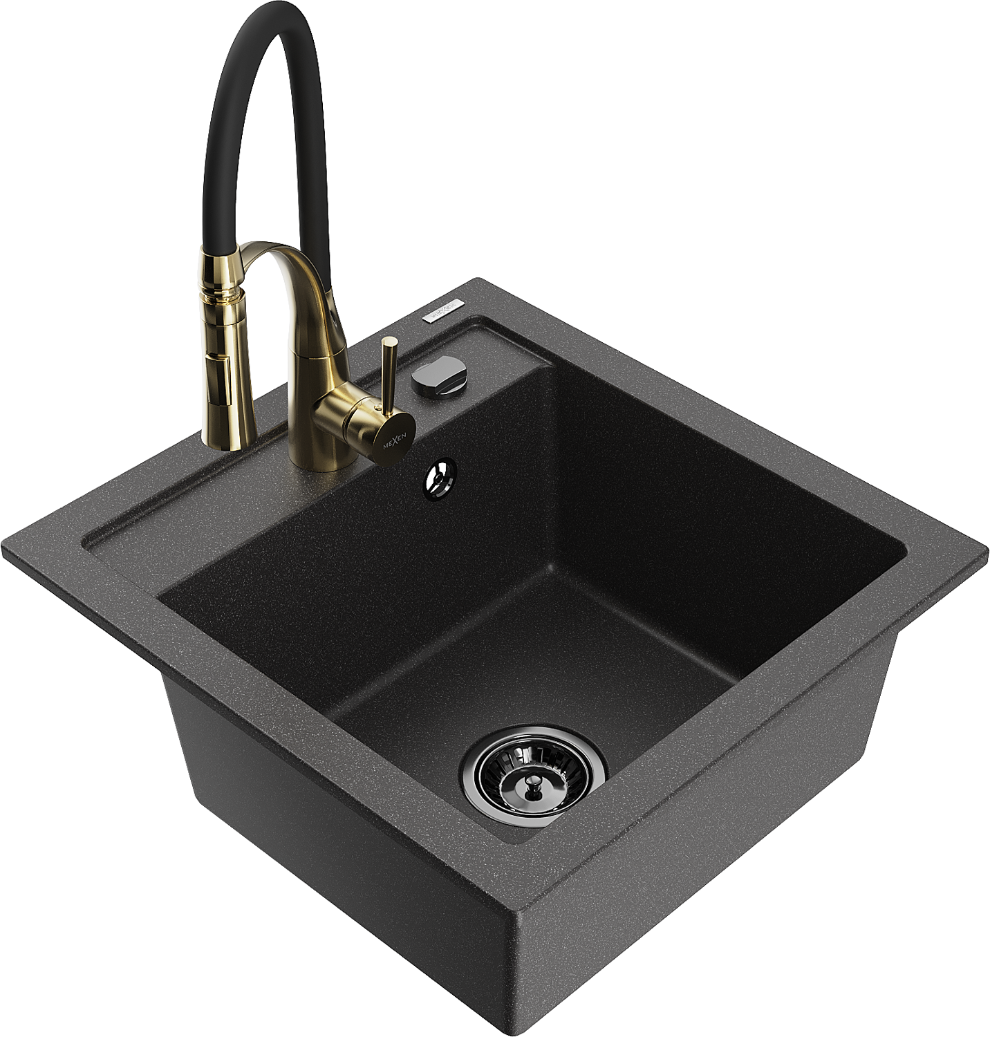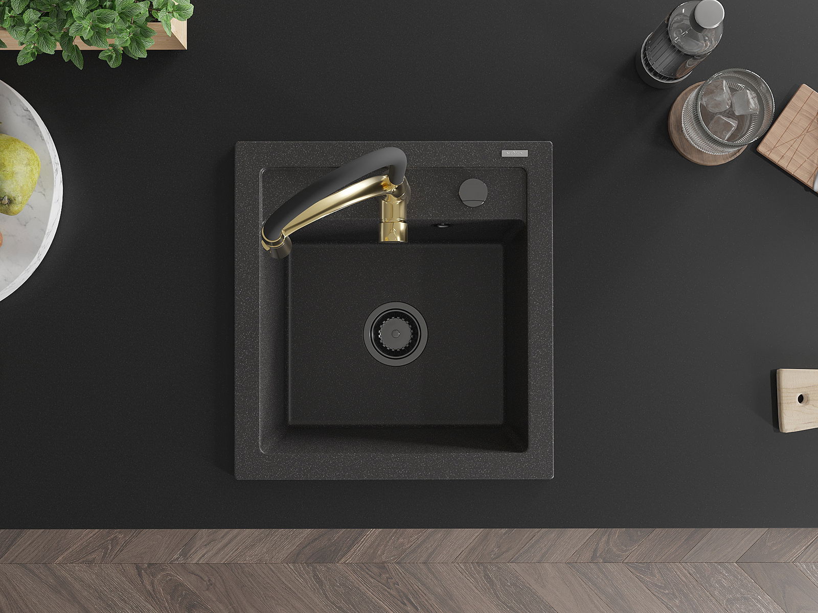 Mexen Vito zlewozmywak granitowy 1-komorowy z baterią kuchenną Aster, czarny nakrapiany - 6503-76-73450-57-B