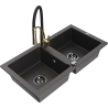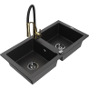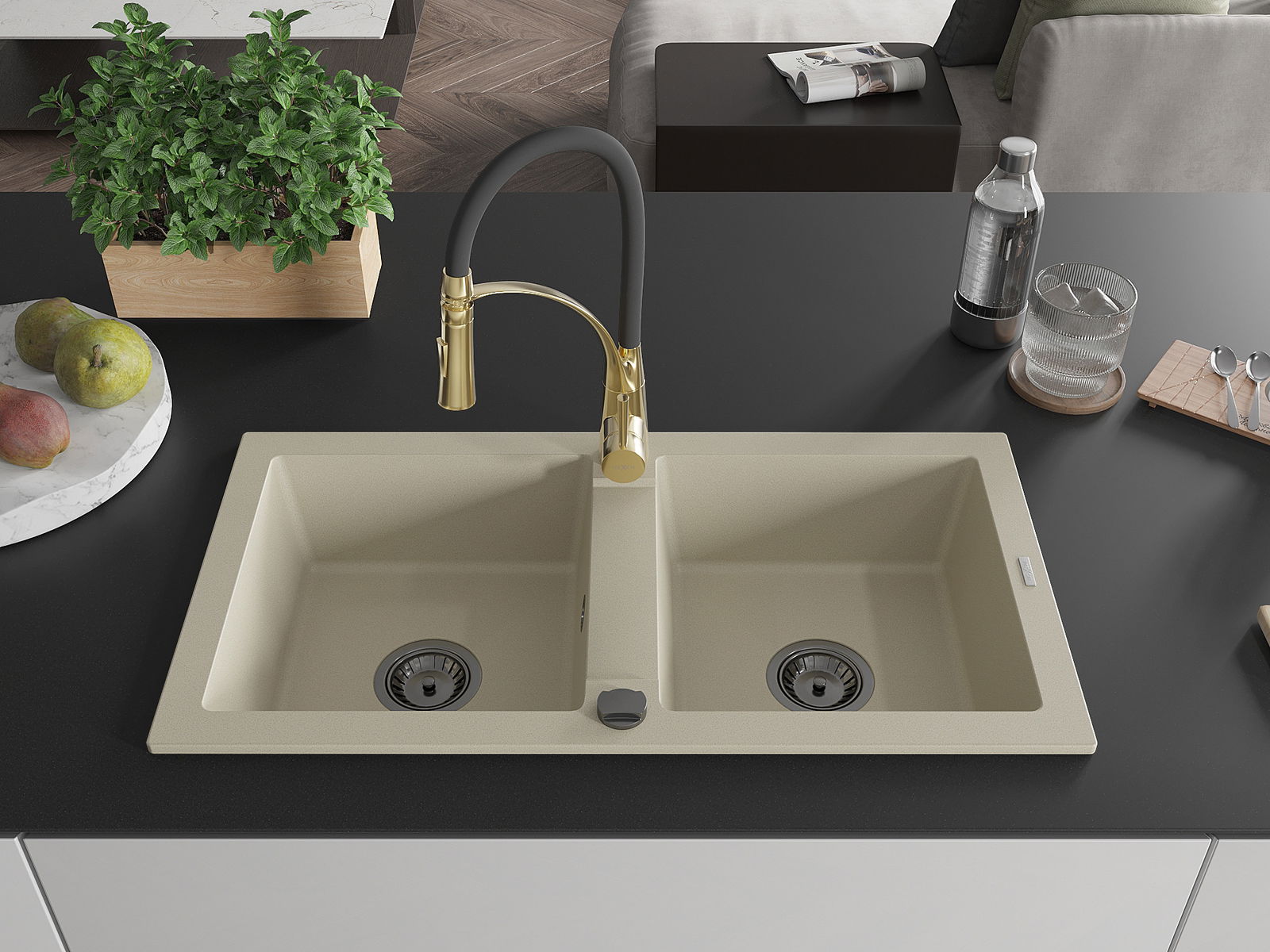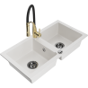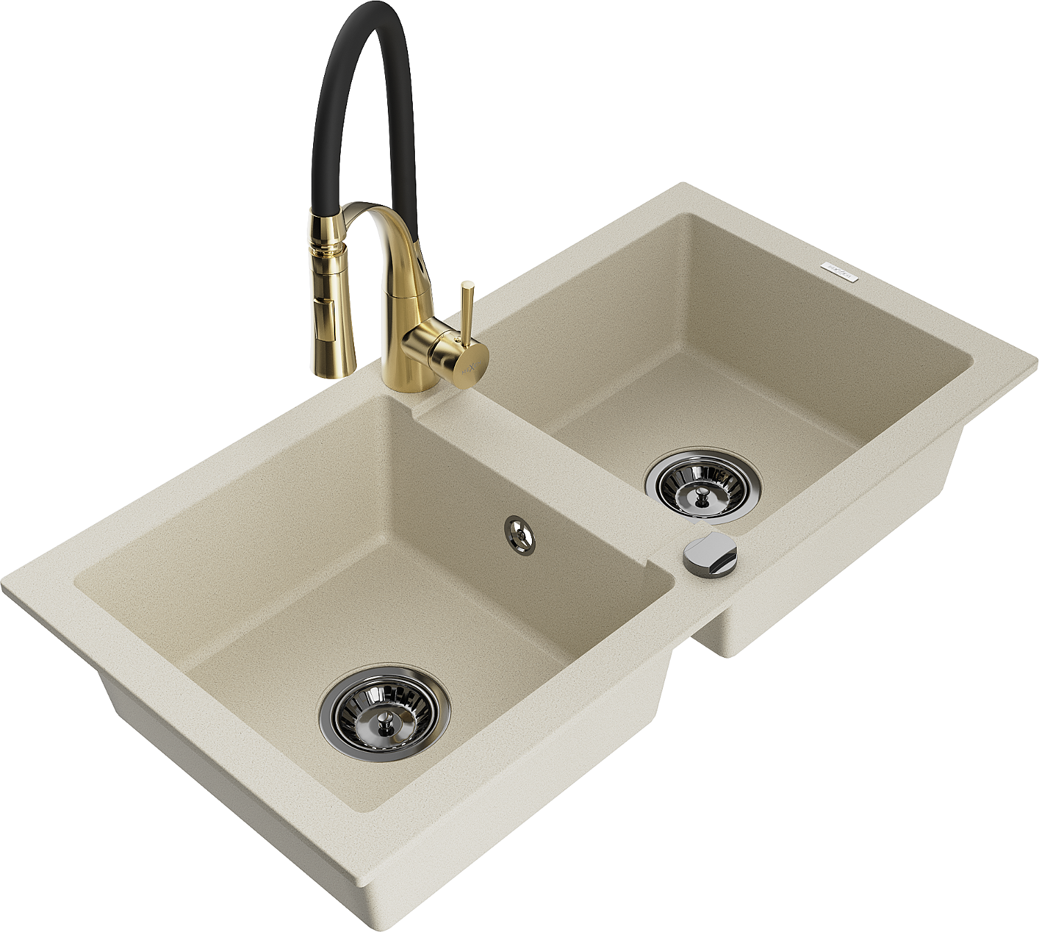 Mexen Mario zlewozmywak granitowy 2-komorowy z baterią kuchenną Aster, beżowy - 6504-69-73450-57-B