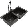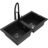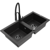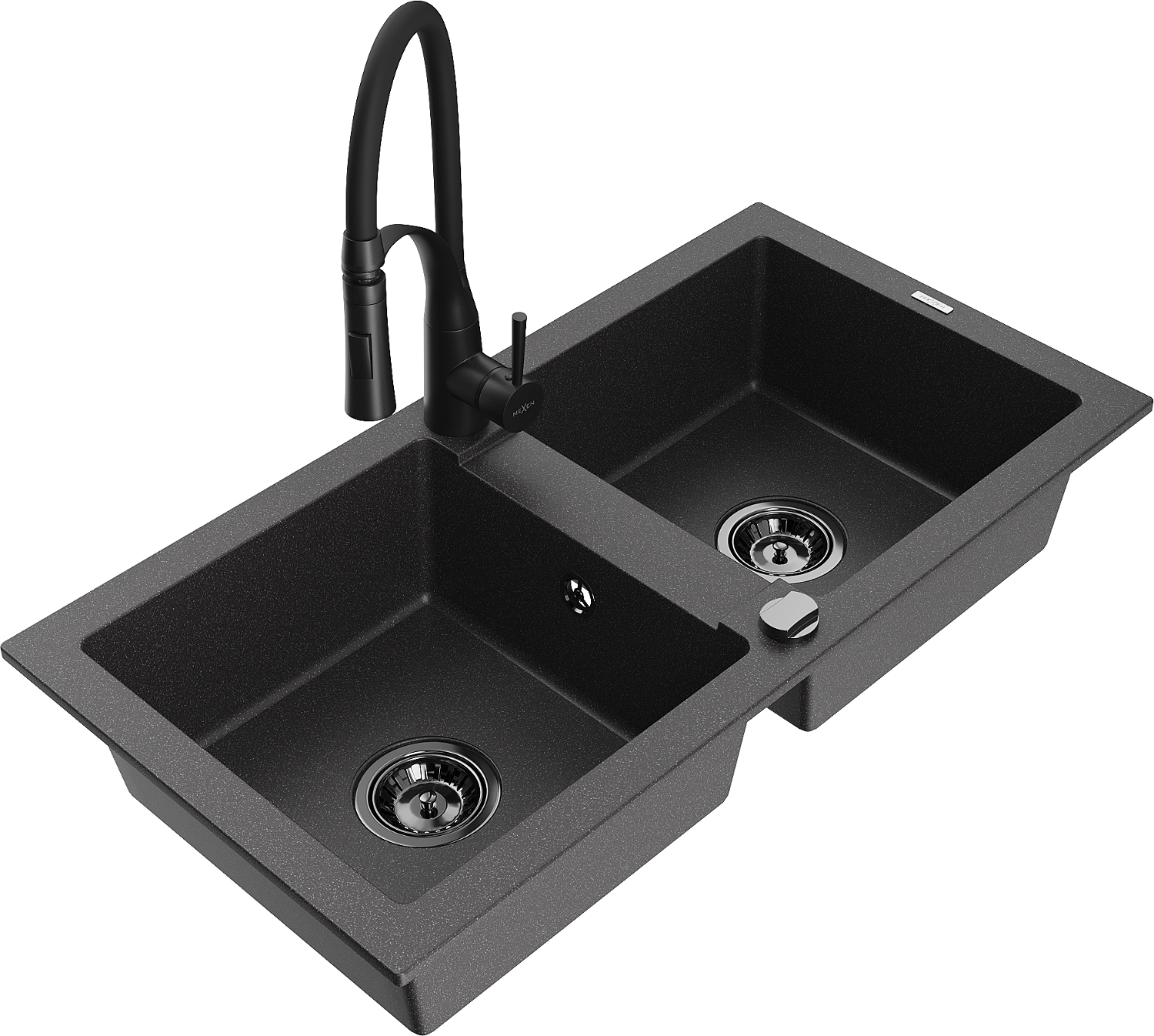 Mexen Mario zlewozmywak granitowy 2-komorowy z baterią kuchenną Aster, czarny nakrapiany - 6504-76-73450-70-B