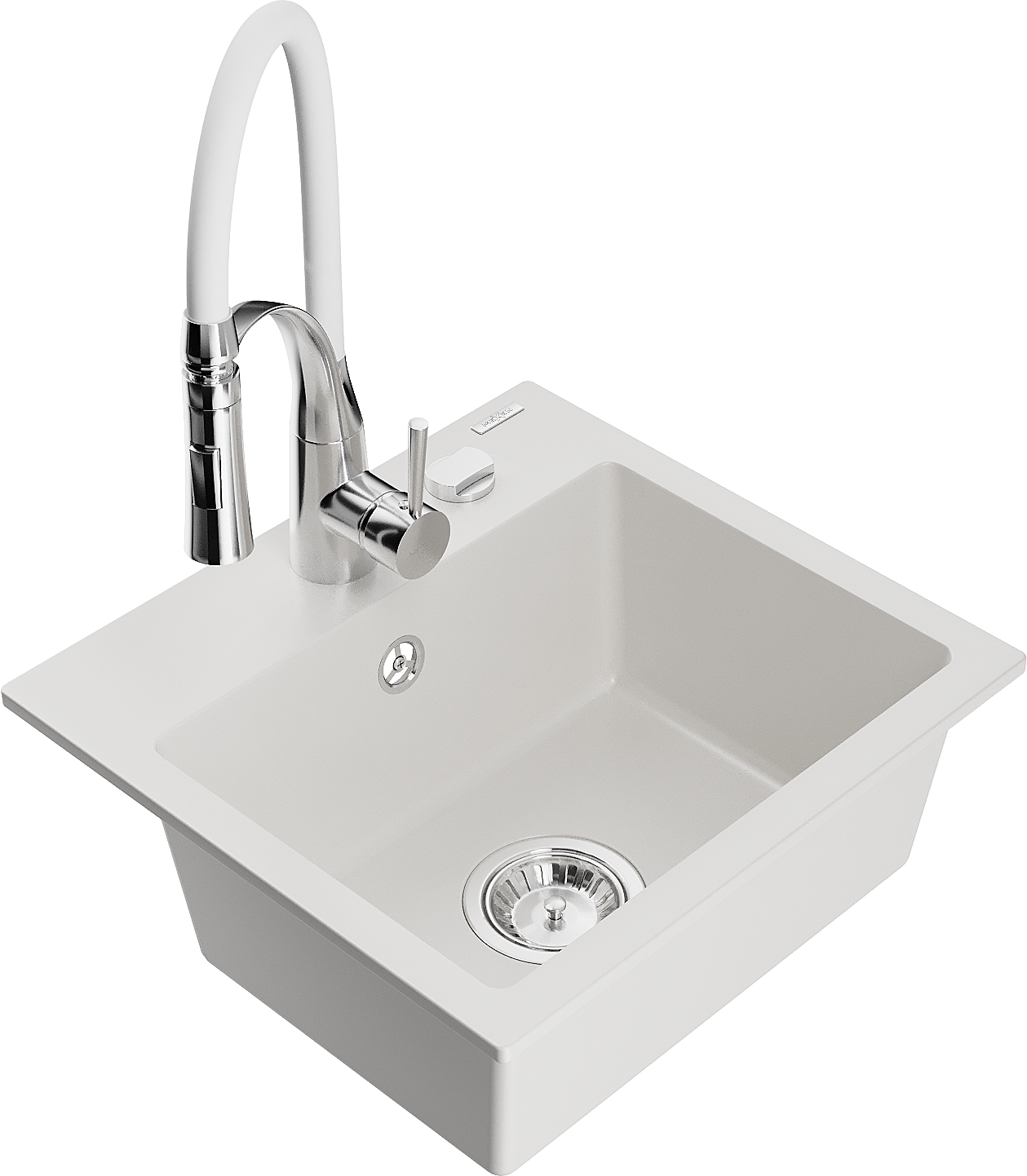 Mexen Milo zlewozmywak granitowy 1-komorowy z baterią kuchenną Aster, biały - 6505-20-73450-02