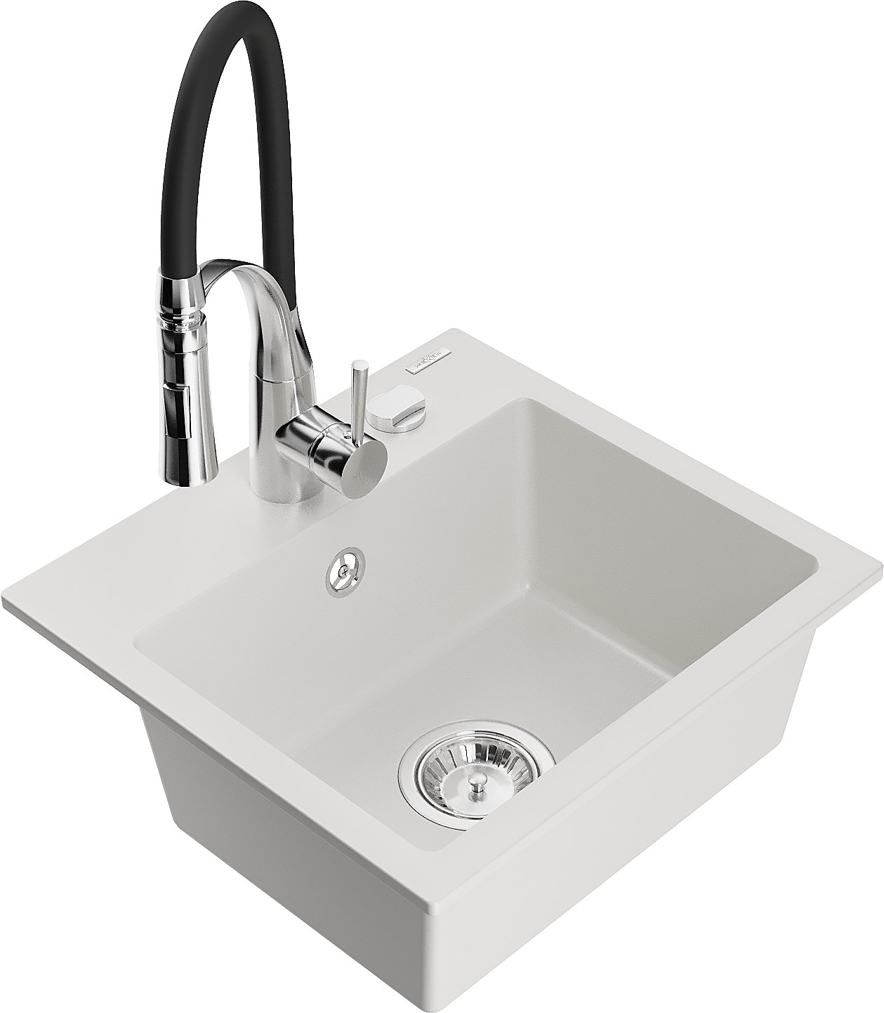 Mexen Milo zlewozmywak granitowy 1-komorowy z baterią kuchenną Aster, biały - 6505-20-73450-07
